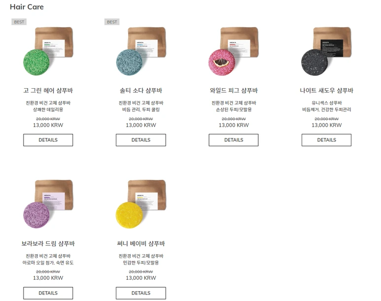 솔티 소다 말고도 다양한 기능성 샴푸바들이 있었는데, 저는 평소 두피건선 증상이 조금 있어서 머리를 감아도 비듬같이 각질이 올라오는 것에 대한 고민이 있었기 때문에 이 제품으로 골라봤어요.