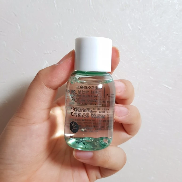 편의상 토너라고 했지만 정식 이름은 그린티 에센스 워터예요. 제가 받은 증정품은 30ml인데, 홈페이지를 보니 150ml에 13,300원이더라고요. 가격도 나쁘지 않은 것 같아요. ‘워터’ 답게 점성이 조금 있는 토너나 스킨과 달리 끈적임 없는 물 같은 제형이에요.