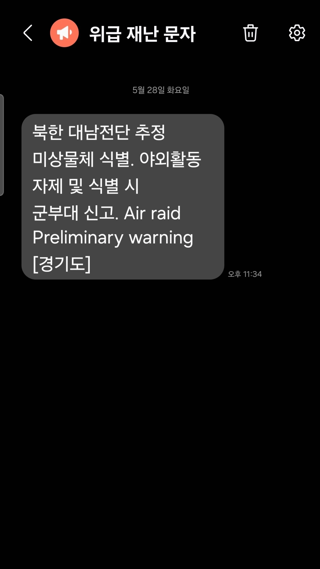 자려고 누웠는데 갑자기 재난 문자가 왔다.
