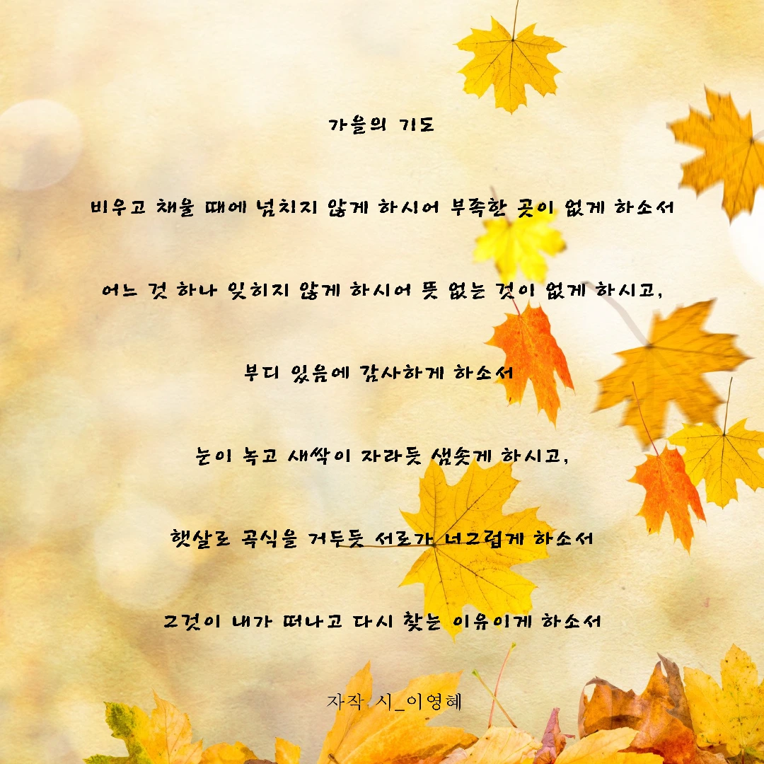 다정한 햇살에 늦된 잎들은 노을을 담느라 바빠졌습니다
