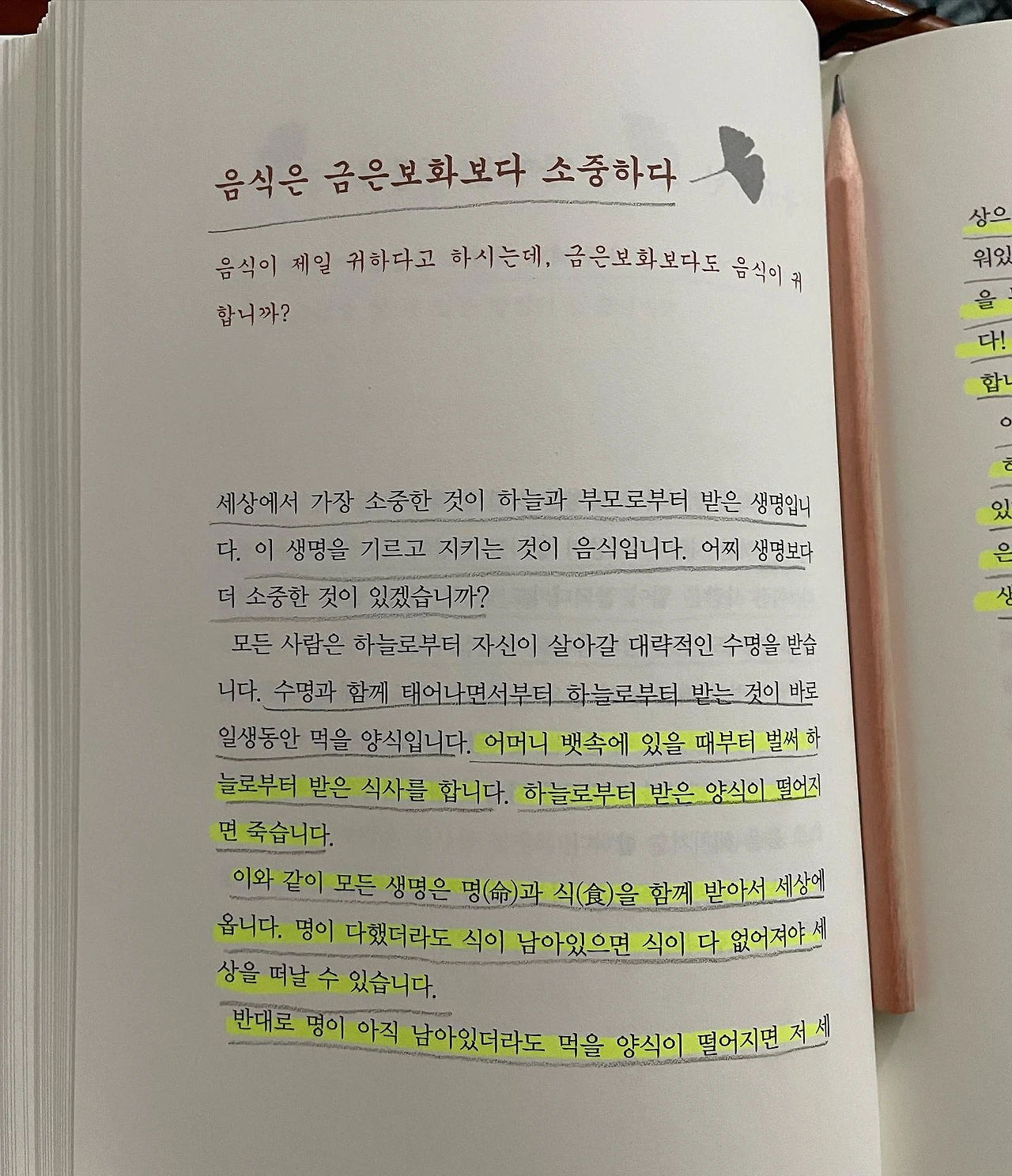 음식이 제일 귀하다고 하시는데, 금은보화보다도 음식이 귀합니까?