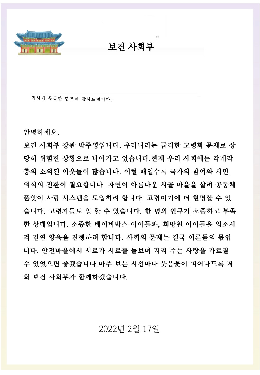 "응 저번에 말한 국가 시범 복지 사업하는 곳"