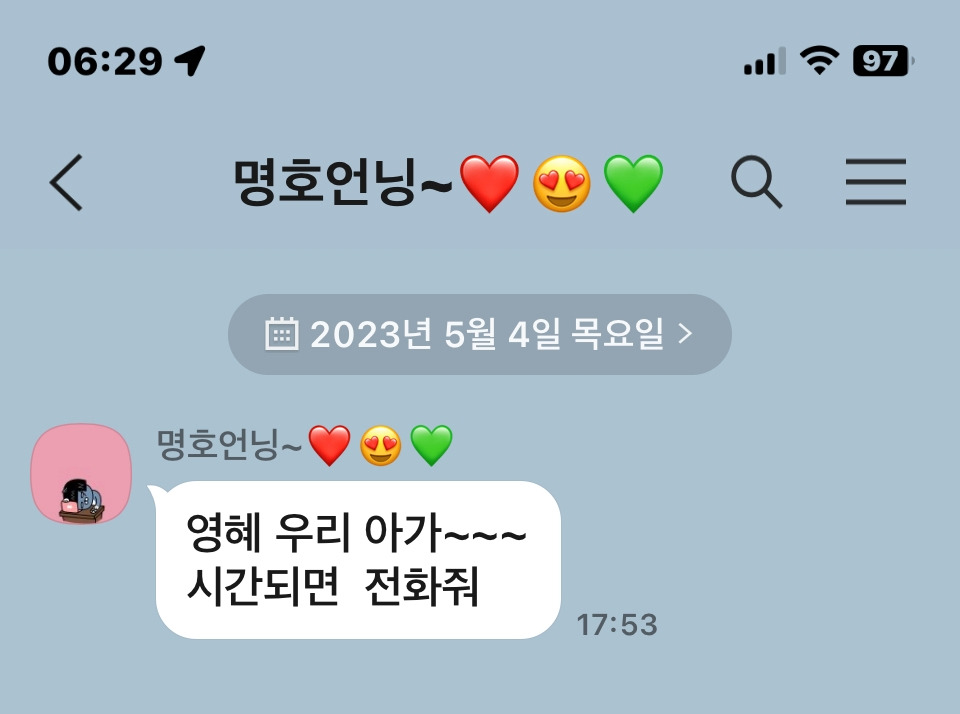 핸드폰을 비행기 모드로 해놓으니 카톡으로 연락이 왔다.