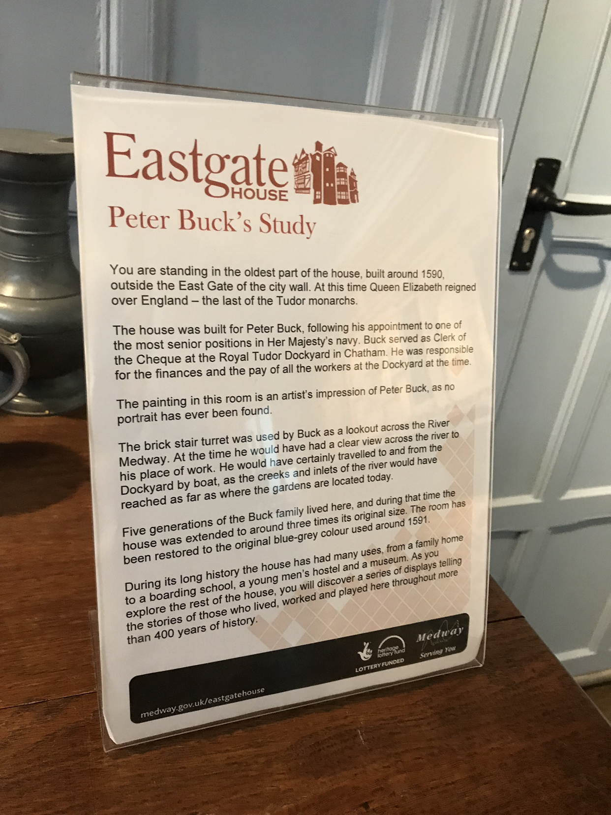 이 집은 1590년에 지은 것으로(여기서부터 긴호흡 주의) Sir Peter Buck과 그의 가족이 살다가 1791년에는 보딩 스쿨로 바뀌었고 1836년에는 찰스 디킨스의 소설에도 등장하며 1890년에는 호스텔로, 1897년에는 식당으로, 1903년에는 박물관과 도서관이 되었다가 1979년에는 찰스 디킨스 센터로 그리고 지금은 또 다른 박물관 형식의 관광 명소로 사용 중이다. 한국처럼 쉽게 부수고 다시 짓고 하는 곳에서 온 나는 이런 오래된 집 구경이 흥미로웠다.