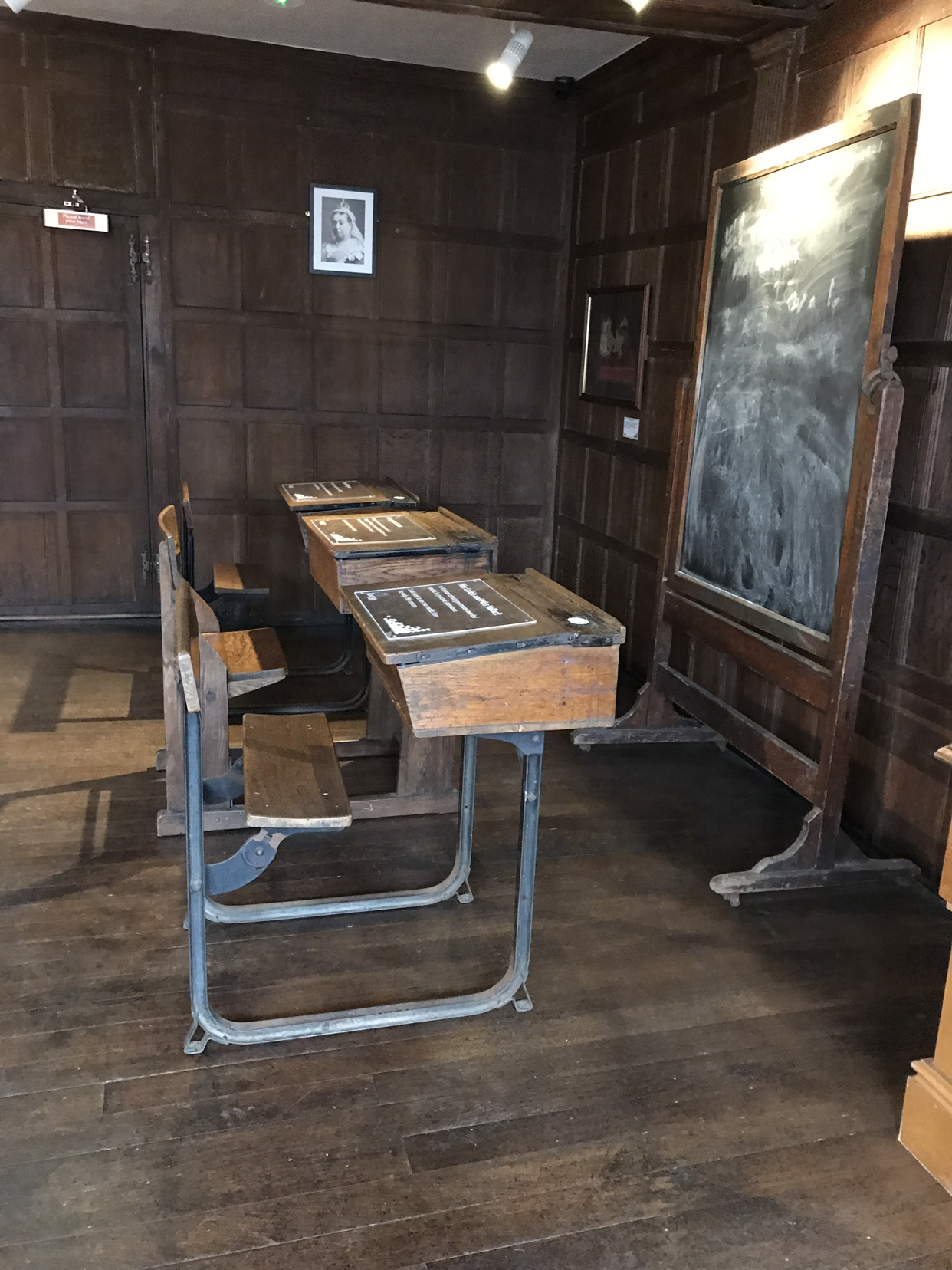 80년대 초등학교가 생각나지만 1791년 영국 학교를 재현해놓은 것. 벽에 빅토리아 여왕이 걸려있다.