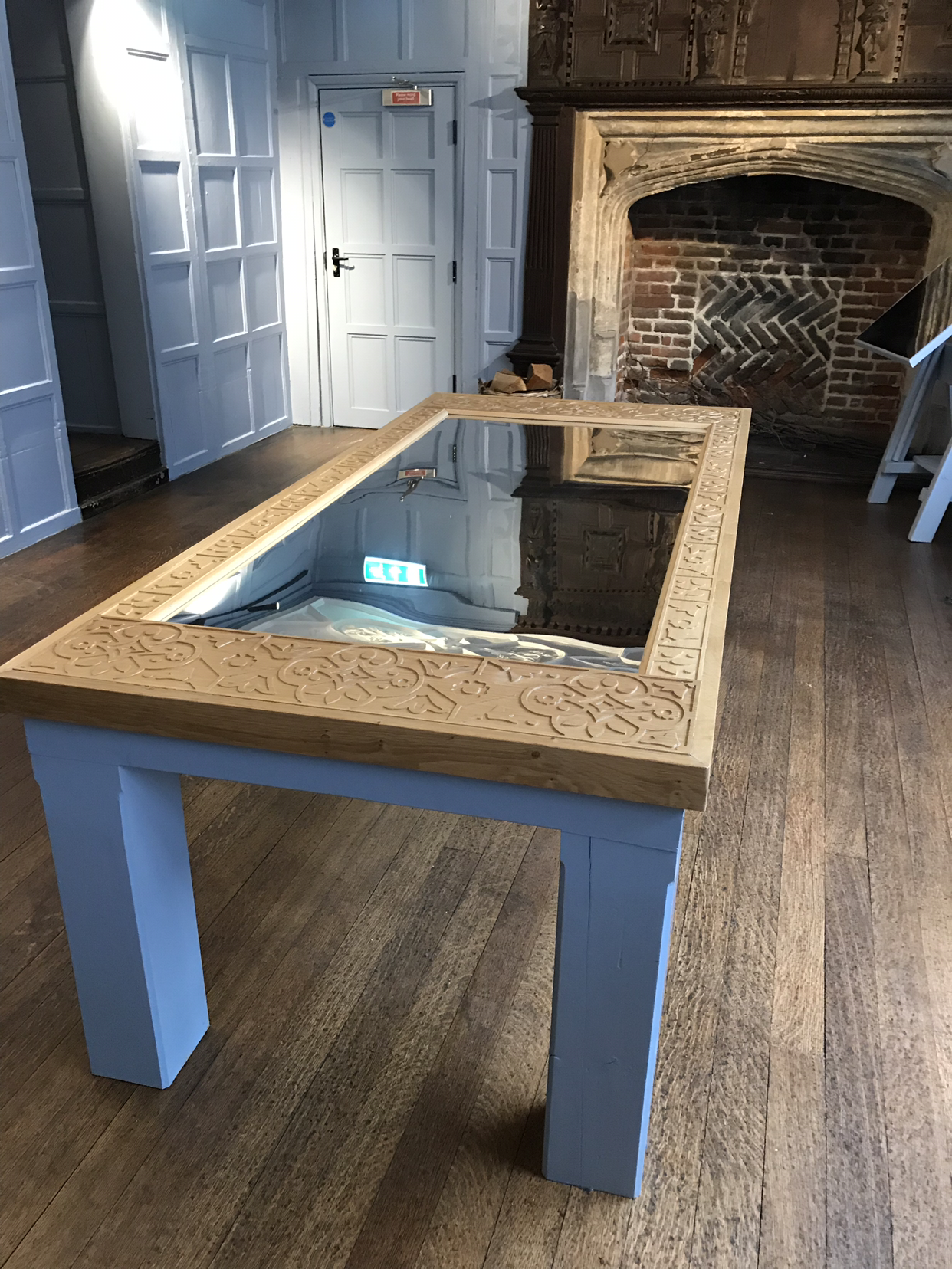 가운데에 거울형 탁자를 두어 천장을 보기 쉽게 하였다.