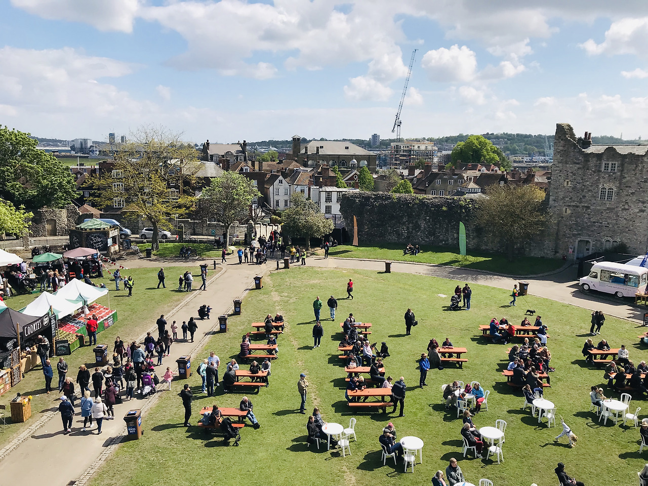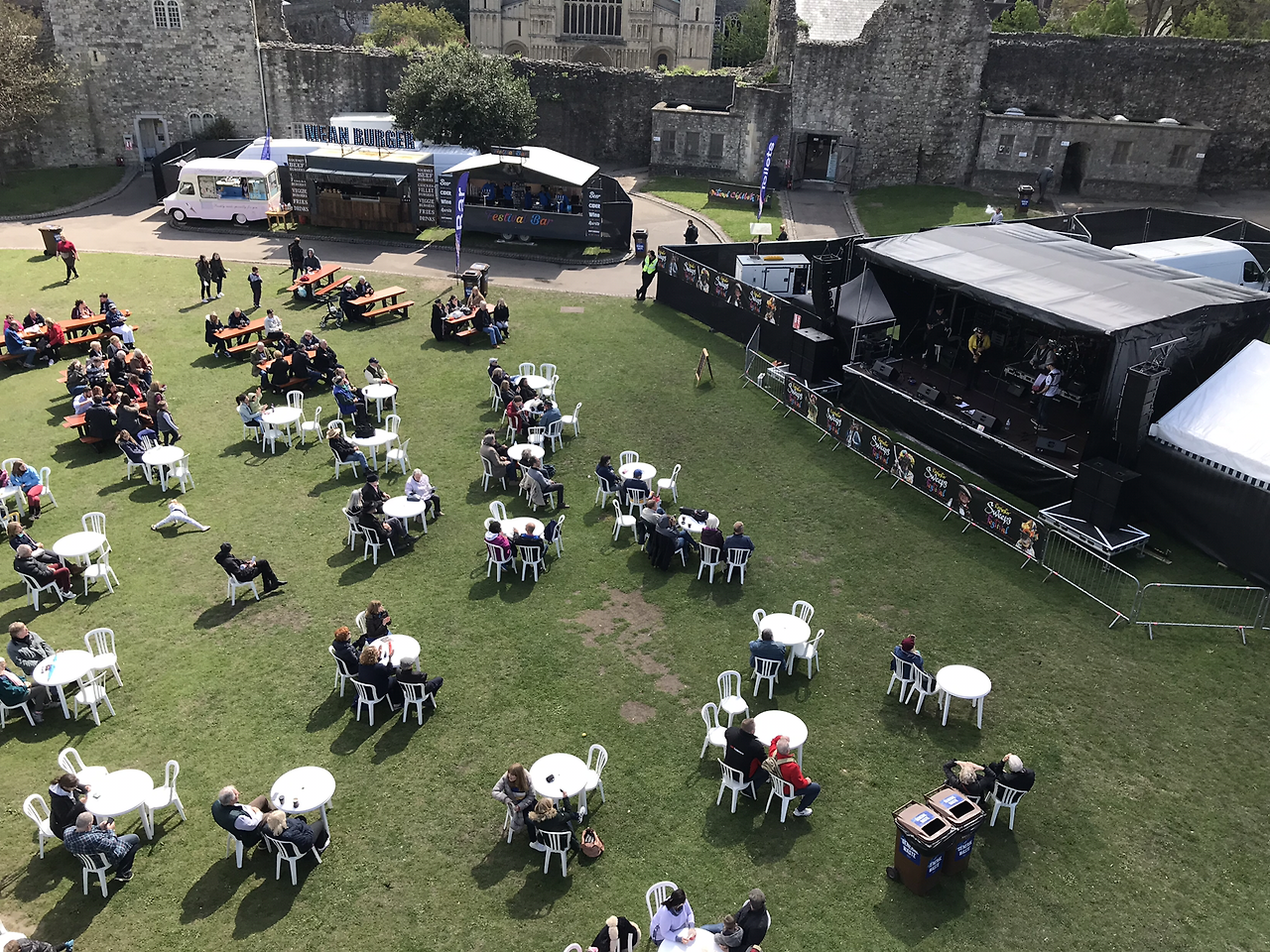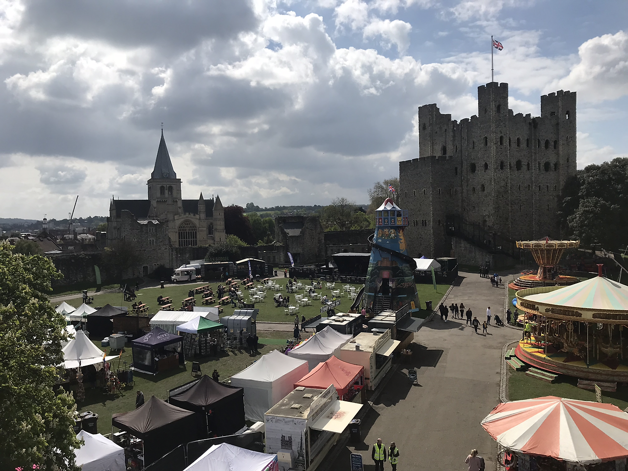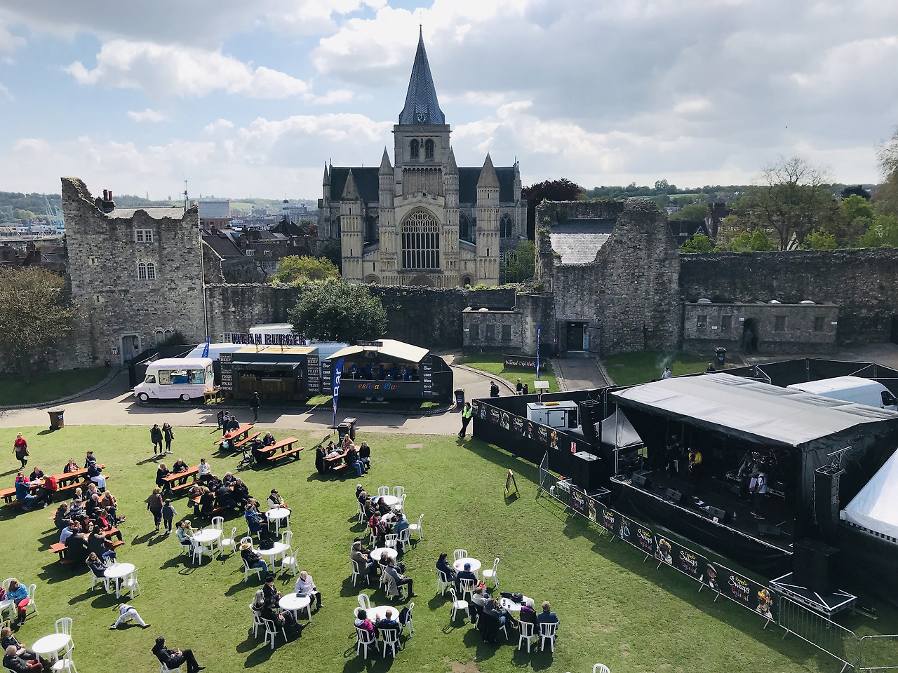 로체스터 성곽, 로체스터 성당, 그리고 임시 공연장이 묘하게 어우러져 지역 주민과 관광객들에게 볼거리를 제공한다.
