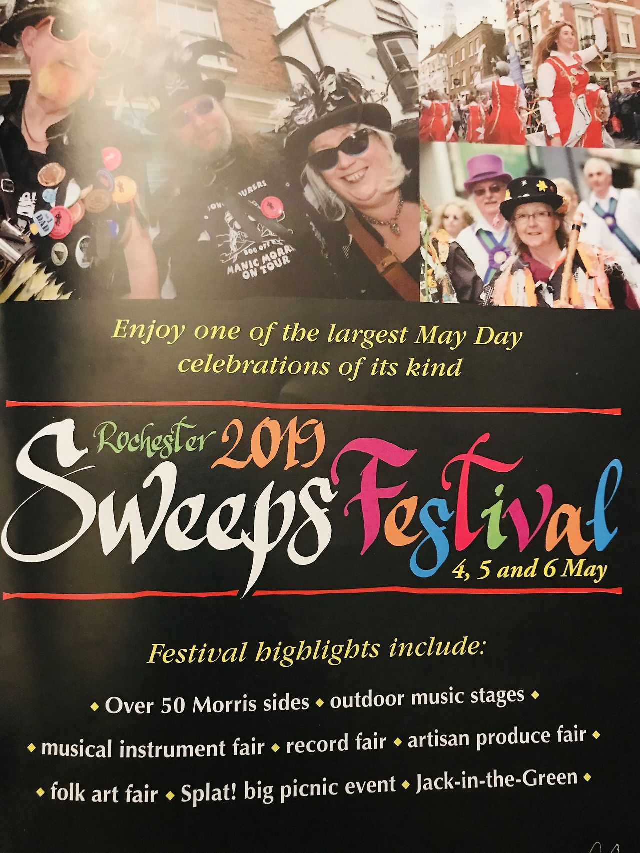 전국에서 모인 백여명의 모리스(영국의 전통 춤)댄서들, 로체스터 걷기 투어, 아이들을 위한 각종 무료 행사들, 12개의 펍, 다양한 음악 장르의 밴드/합창단 공연, 빅토리아 시대의 빈티지 의상을 입은 사람들까지.. 로체스터 거리 곳곳에서 만날 수 있다.