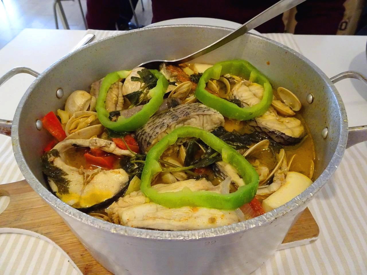 포르투갈의 대표 음식 중에서도 간단한 구이를 제외한 생선 요리는 기본적으로 시간이 제법 걸리는 편이니, 버스 시간이 임박했다거나, 일정상 남은 시간이 촉박하다면 절대 시도해서는 안된다. 하지만 우린 시간이 많으니 별 문제가 없다. 그리고 여긴 바닷가 마을이니까! 하는 마음에 야심 차게 생선 요리를 골라 주문했다. 뭐가 뭔지 잘은 모르지만 대구가 주인공인 요리 중에서 어설프게 ‘Fish Stew’라고 번역되어있는 메뉴를 골랐다. 종업원이 주문을 받으며 자기네 요리사가 가장 자신 있어하는 요리라며 ‘굿 초이스’를 두 번이나 외쳐주었다. 요리의 공식 명칭은 'Caldeirada'였다.