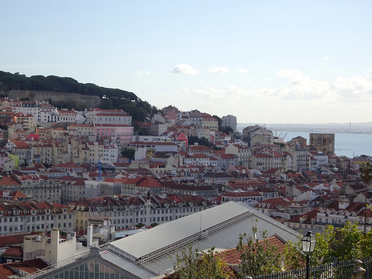 푸니쿨라로 가파른 언덕을 오르자 상 페드루 지 알칸타라 전망대(Miradouro de São Pedro de Alcântara)가 나타난다. 리스본의 언덕엔 꼭 전망대가 하나씩 있다. 언덕의 숫자만큼 전망대가 워낙 많다보니 그 중엔 유명한 전망대도 있고 별로 그렇지 않은 곳도 있지만 이곳은 리스본을 방문한 여행자들이 꼭 한번쯤은 들러보는, 아주 유명한 전망대이다.