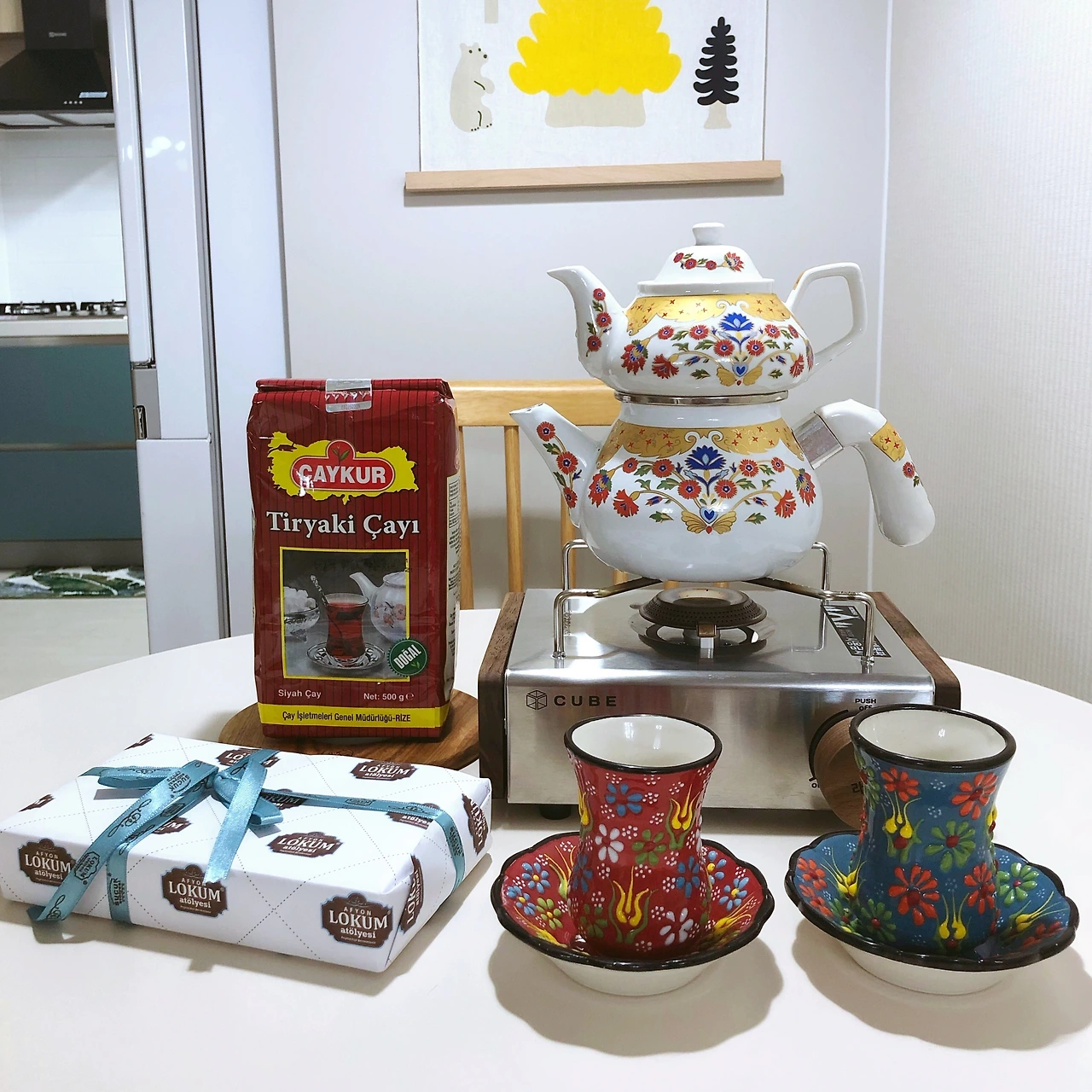 누군가 집에 놀러왔을 때 멋진 티 테이블을 뽐내고 싶다면 터키식 상차림은 꽤 좋은 선택지가 된다. 일단 무척 이국적인 느낌. 이 이국적인 느낌의 백미는 바로 2단짜리 주전자로 ‘차이단륵’이라는 멋진 이름도 갖고 있다. 터키식 홍차, ’차이’는 왜인지 모르겠지만 꼭 차이단륵으로 내야만 특유의 그 맛이 난다. 그래서 조금 번거로워도 이 주전자를 포기할 수가 없다. 차이단륵으로 차이를 끓이는 방법은 아래와 같다.
