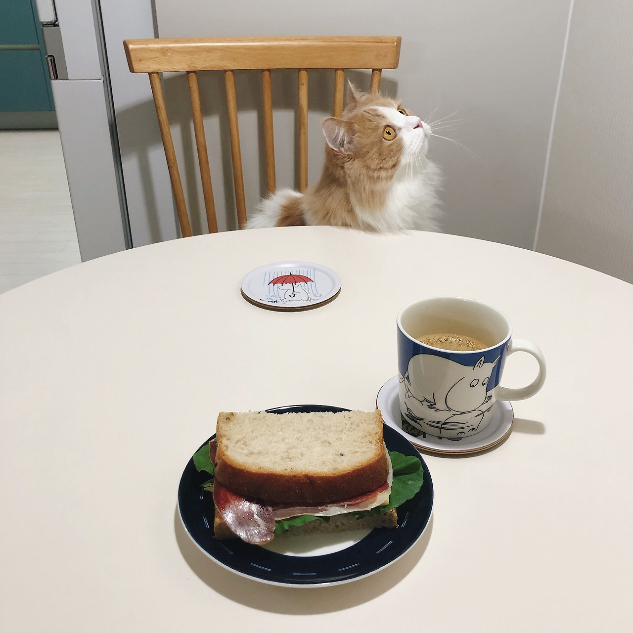 지난 밤, 와인에 곁들여먹고 남은 프로슈토를 활용해 뚝딱 샌드위치를 만들었다. 간 밤의 들썩거림은 온데간데 없이 사라진 고요한 아침. 곧 출근이다.