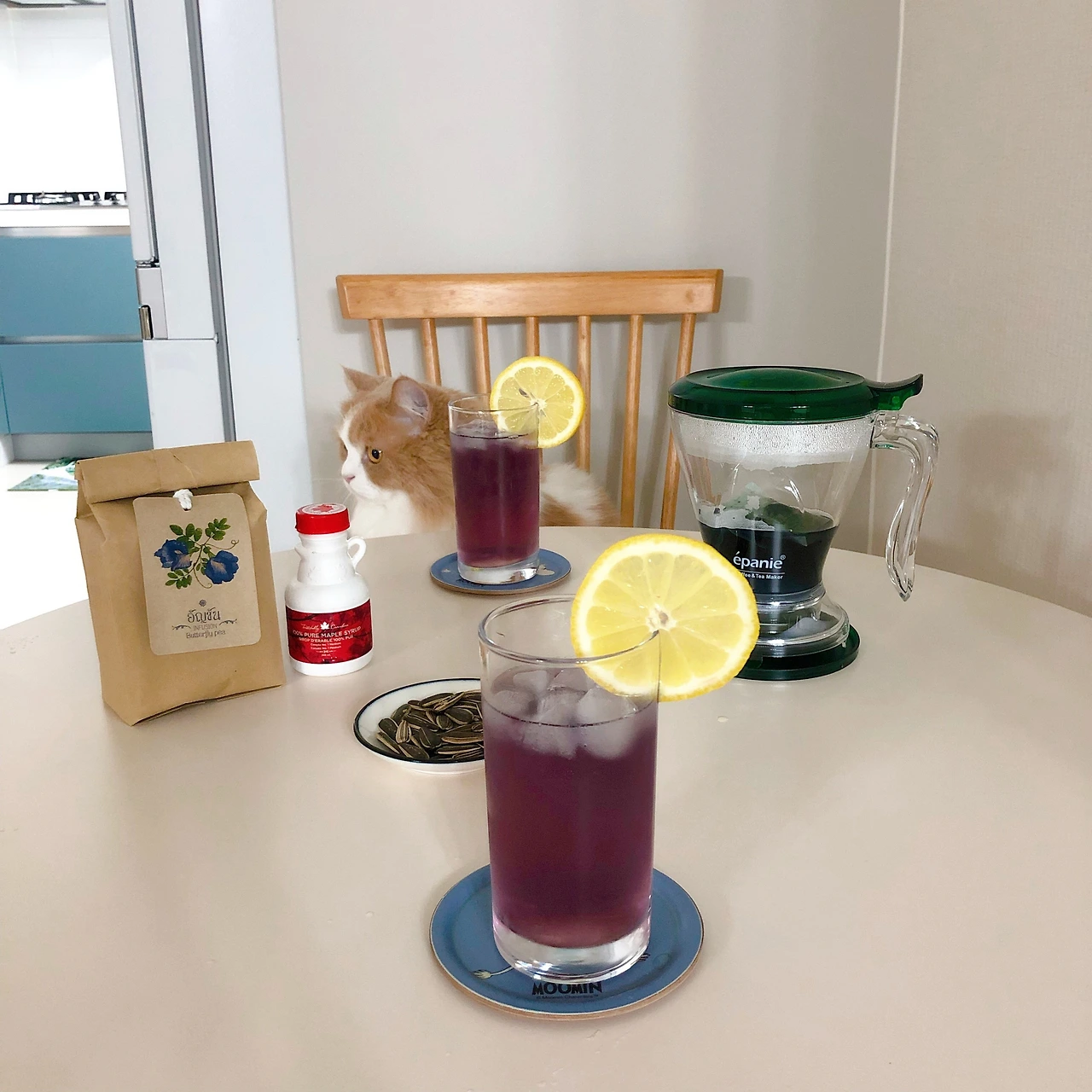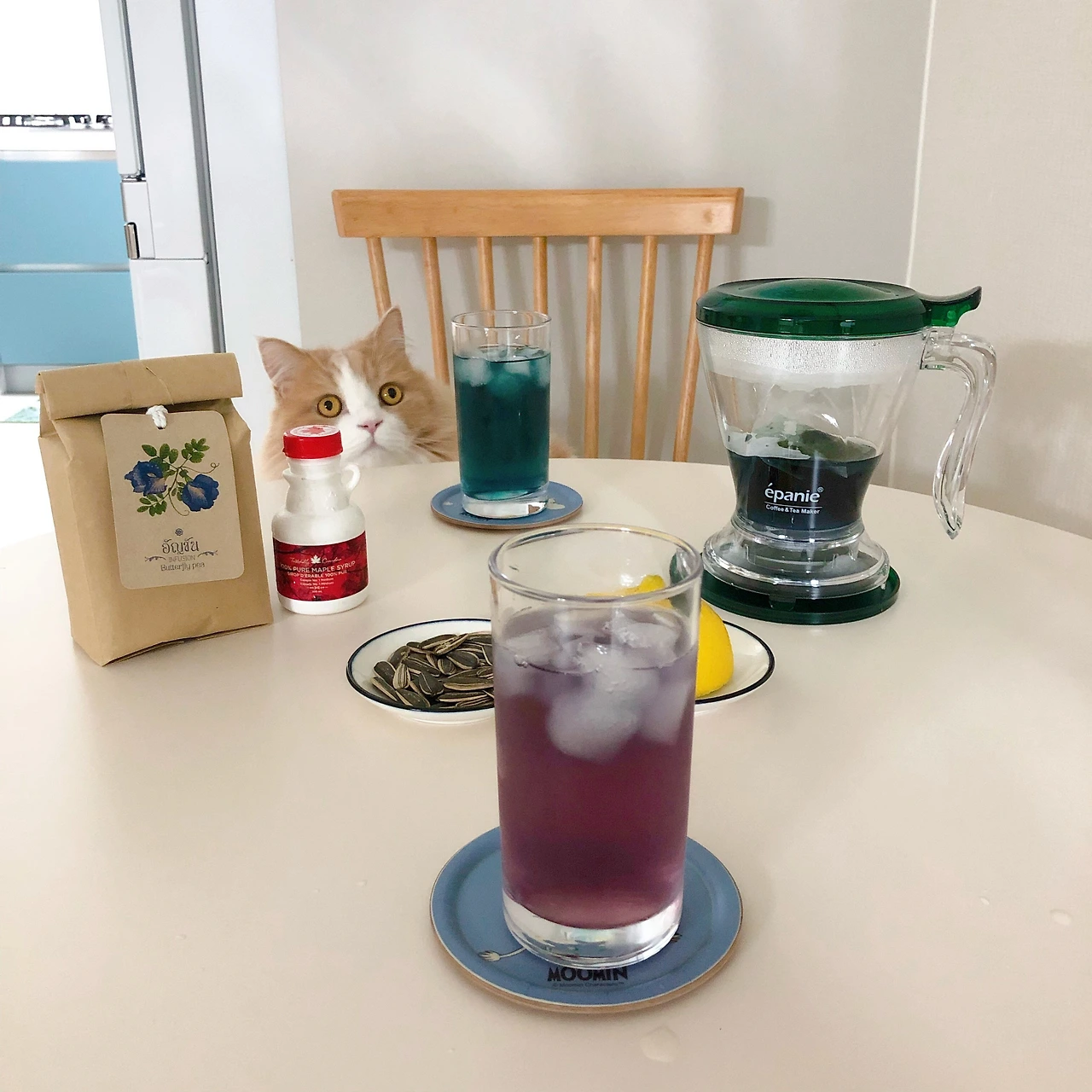 ButterFlyPea Tea의 매력은 코나 입으로 느낀다기보다는 역시 눈으로 보는 것. 물에 우려냈을 때는 강력한 안토시아닌 성분 덕에 푸른 색을 띄는데 여기에 레몬즙이나 라임즙 등 산성 물질을 더하면 보라빛을 거쳐 자주빛으로 변하는 모습이 무척이나 신비롭다. 단순한 산화환원 반응일 뿐이지만, 이 광경을 처음 만난 이들이 느끼는 감정은 분명 그 이상일 것이다.