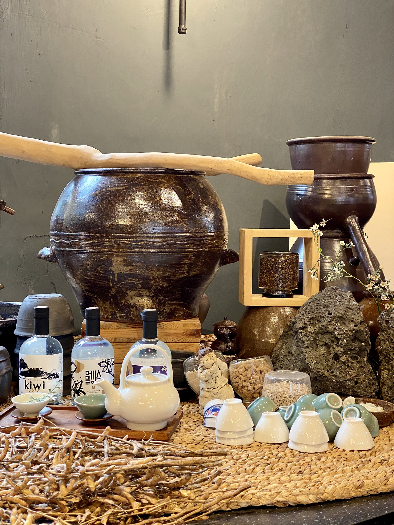 요렇게 3가지 맛보고 신제품이라는 25도짜리 소주도 시음했는데 넘 부드러워서 깜놀했더니 40도짜릴 먼저 먹는 바람에 상대적으로 요게 물이 된거라고 하셨다는. 그 와중에 거거는 안주로 내어주신 동결건조청국장에 빠져 콩 무한 흡입.. 덕분에 요것도 한 병 구매.