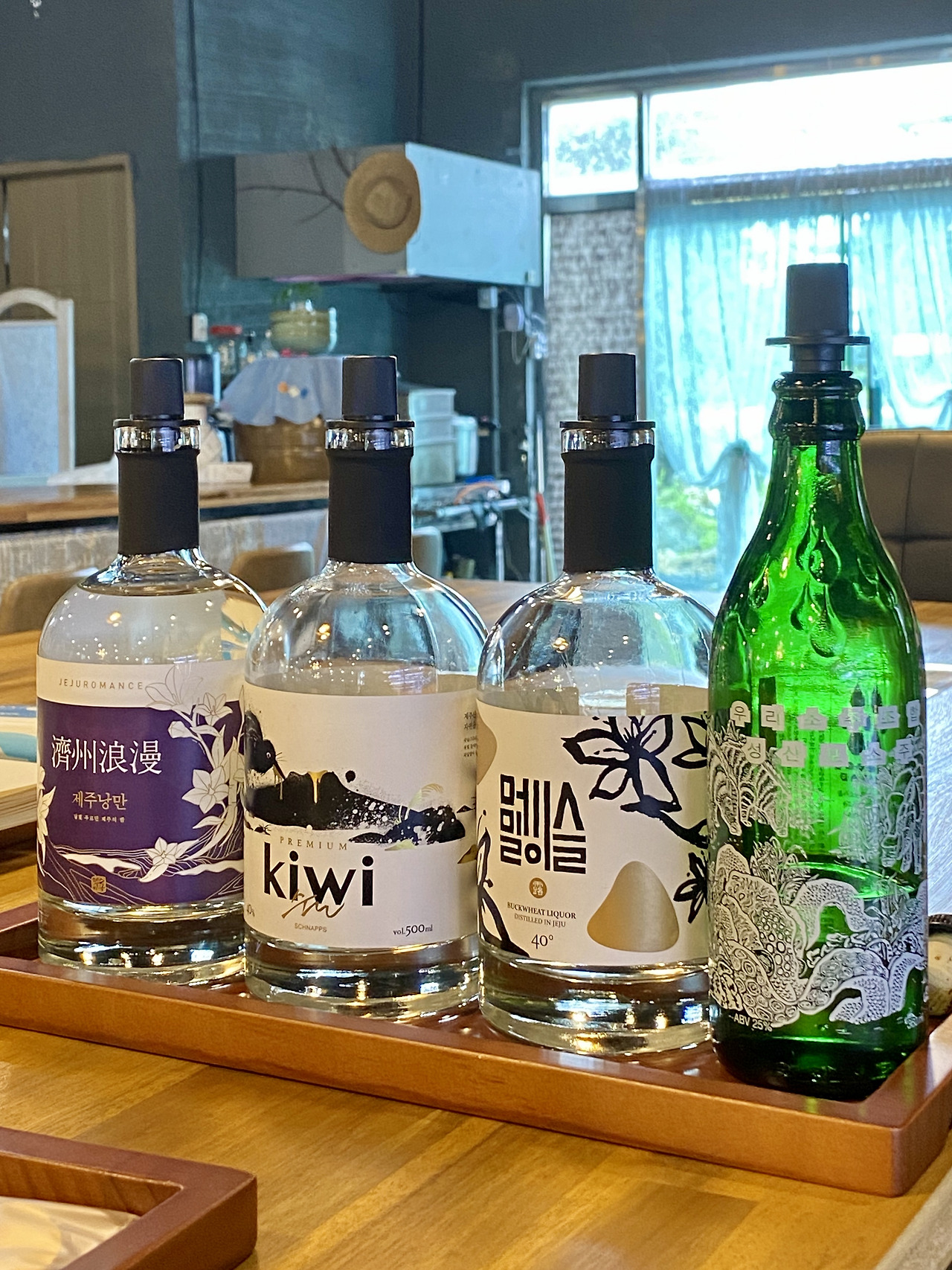 ◇ 키위주 - 제주에서 귤 다음으로 많이 키우는 과일은 키위. 요 술은 놀랍게도 키위주라는 이름이 무색할 만큼 달달새콤한 맛은 전혀 없고 대신 키위 특유의 톡 쏘는 맛이 인상적.