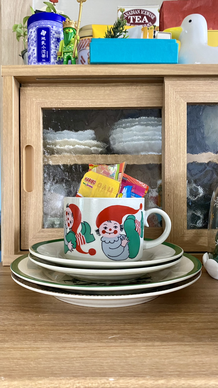11월 정도부터를 크리스마스 시즌의 시작이라고 본다면 이 시즌에 유독 니즈가 폭발하는 빈티지가 있다. 그건 바로 아라비아 핀란드의 똔뚜 머그다. 북유럽에서 산타 클로스를 도와주는 요정을 뜻하는 똔뚜는 이미 산타 클로스의 인기를 넘어섰고, 이 똔뚜를 깜찍하게 그려넣은 아라비아 핀란드의 머그는 진짜진짜 구하기 어렵다. 요즘은 상품의 컨디션을 꼼꼼히 따지고 구매할 여력조차 되지 않아 눈에 보이면 무조건 사야하고, 잠시 망설이는 사이 누군가 낚아채가는 일도 부지기수다. 니즈는 많은데 시장에 풀린 물건의 수는 매년 줄어드니 문자 그대로 부르는게 값. 가격은 이미 천정부지로 뛰었다. 4~5년 전까진 10만원 대 중후반에 거래됐지만 지난 겨울엔 무려 4~50만원 대에 육박했다. 머그 하나가 4~50만원이라니! 금을 담아 먹어도 그 정도는 못되겠다 싶지만 별 대책은 없다. 눈물을 머금고 포기하거나, 눈물을 머금고 지르거나. 빈티지의 가격은 오늘이 가장 저렴하다는 말은 언제나 옳다. 다행히 나는 저 정도 가격이 되기 전, 똔뚜를 들였다. 그래도 두 개를 한 번에 들일 여력은 되지 않아 외롭게 덜렁 하나만 들여 그릇장 깊숙한 곳에 숨겨놓고 아무도 없을 때 몰래 꺼내 나 혼자 쓴다. 설거지도 벌벌 떨며 한다. 내 실수로 이걸 깨는 날이 온다면 아마 나는 내 스스로를 절대 용서하지 못할 것이다.