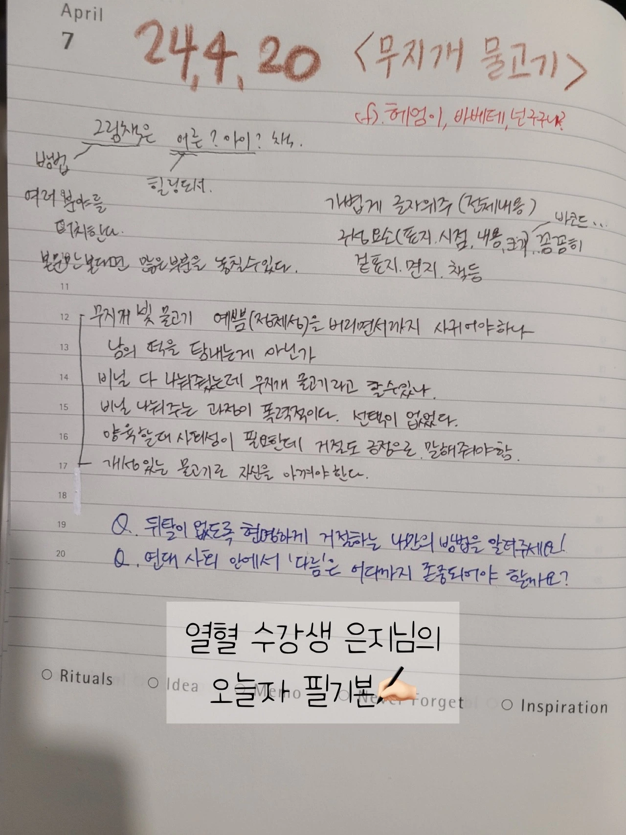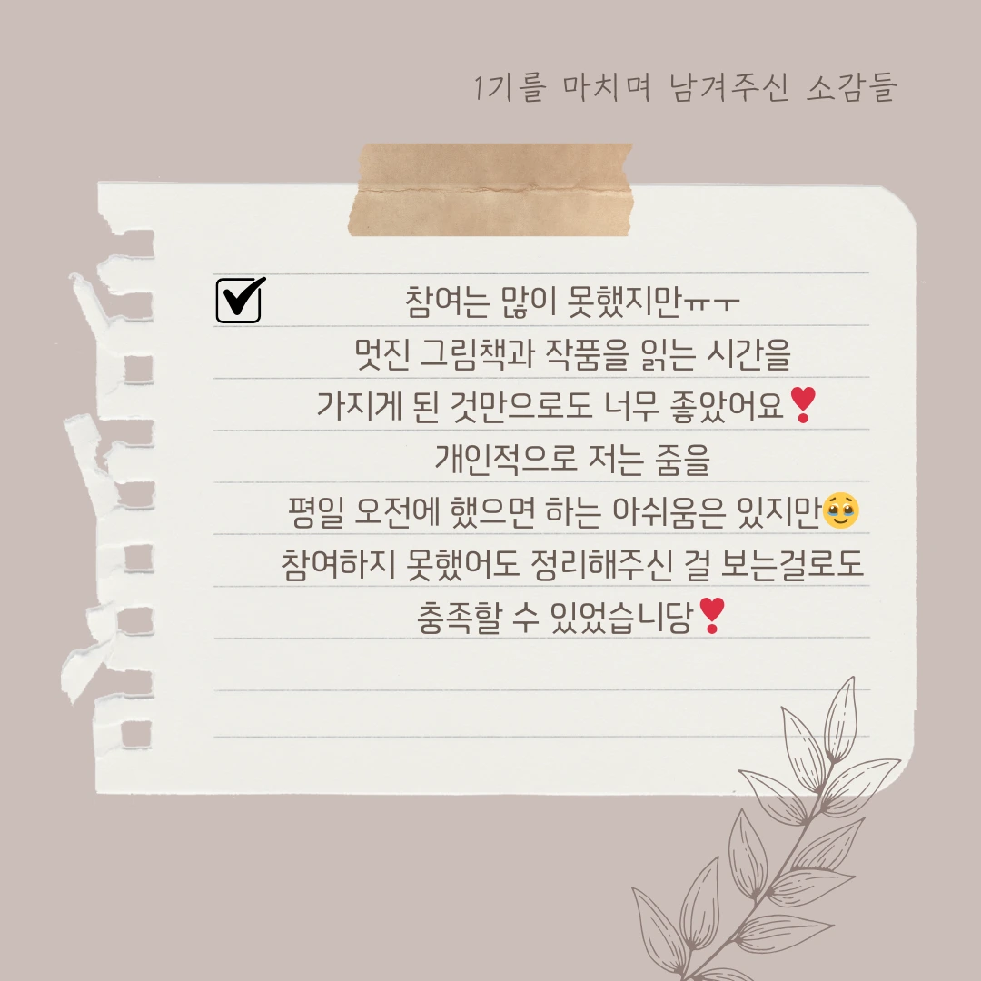 그렇지만 줌 참석은 필수는 아니어요. 과제를 포함, 주요 활동은 카톡방에서 이루어지고, 줌 미팅 참석 못하신 분들을 위해 줌 미팅에서 나눈 이야기들은 (카톡방에서) 노션으로 제공드려요~