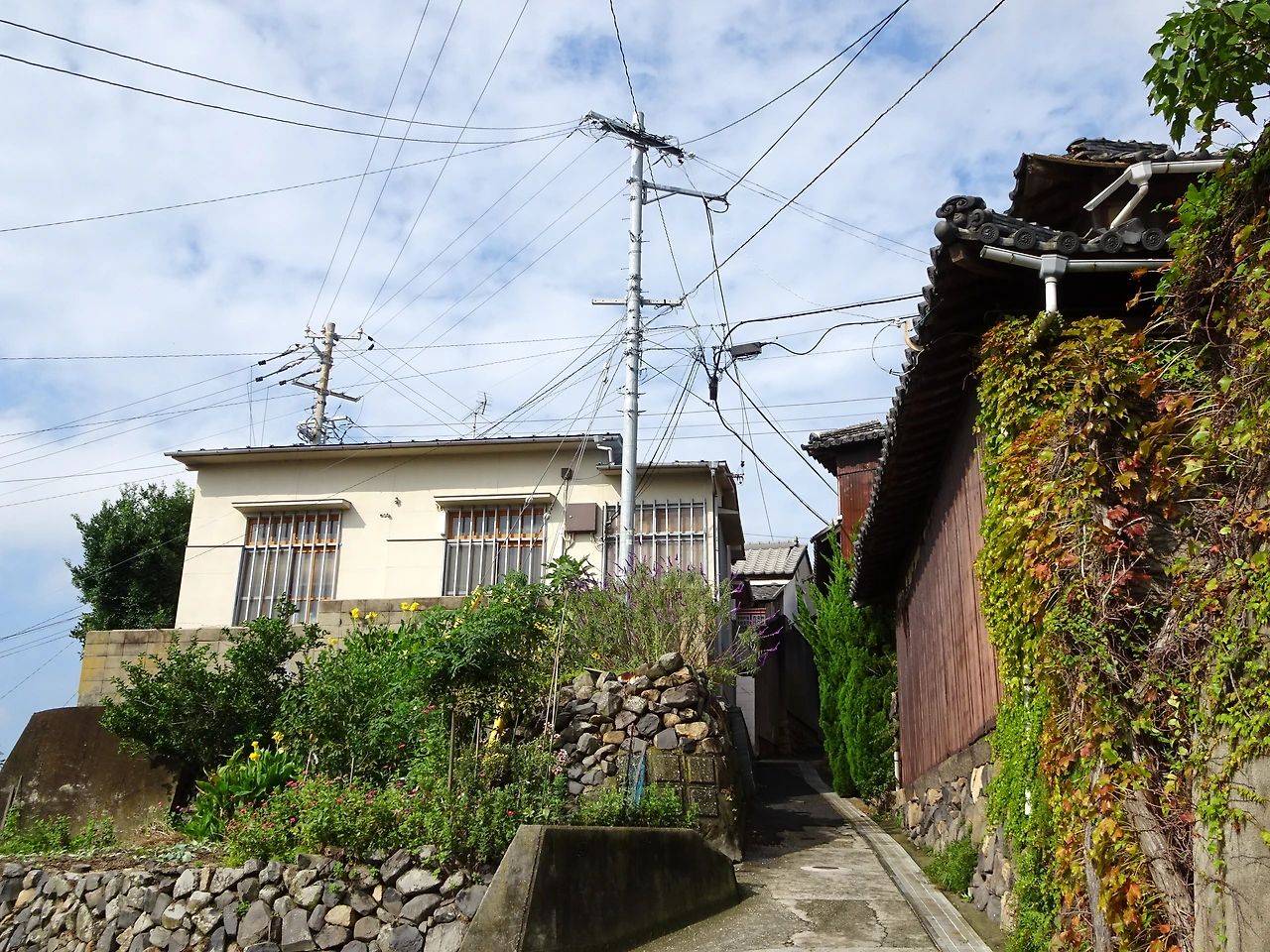 요즘은 한국 곳곳에도 벽화 마을이 있지만 대부분 하나의 벽 전체에 벽화를 그려넣어 경쾌하게 연출하는 경우가 많은데 이렇게 벽의 일부에 조금씩만 적용하니 깔끔하고 정제된 느낌이다. 그리고 골목의 집들을 모두 이런 식으로 꾸몄다면 자칫 정신 없을 수도 있는데 다행히도 이런 집들은 띄엄띄엄 위치하고 있다. <오기지마 골목 벽화 프로젝트 wallalley> 덕분에 벽화가 있는 집과 없는 집, 그리고 주위 풍경까지 모두 조화를 이루며 단조로운 골목에 일종의 리듬감을 불어넣고 있었다.