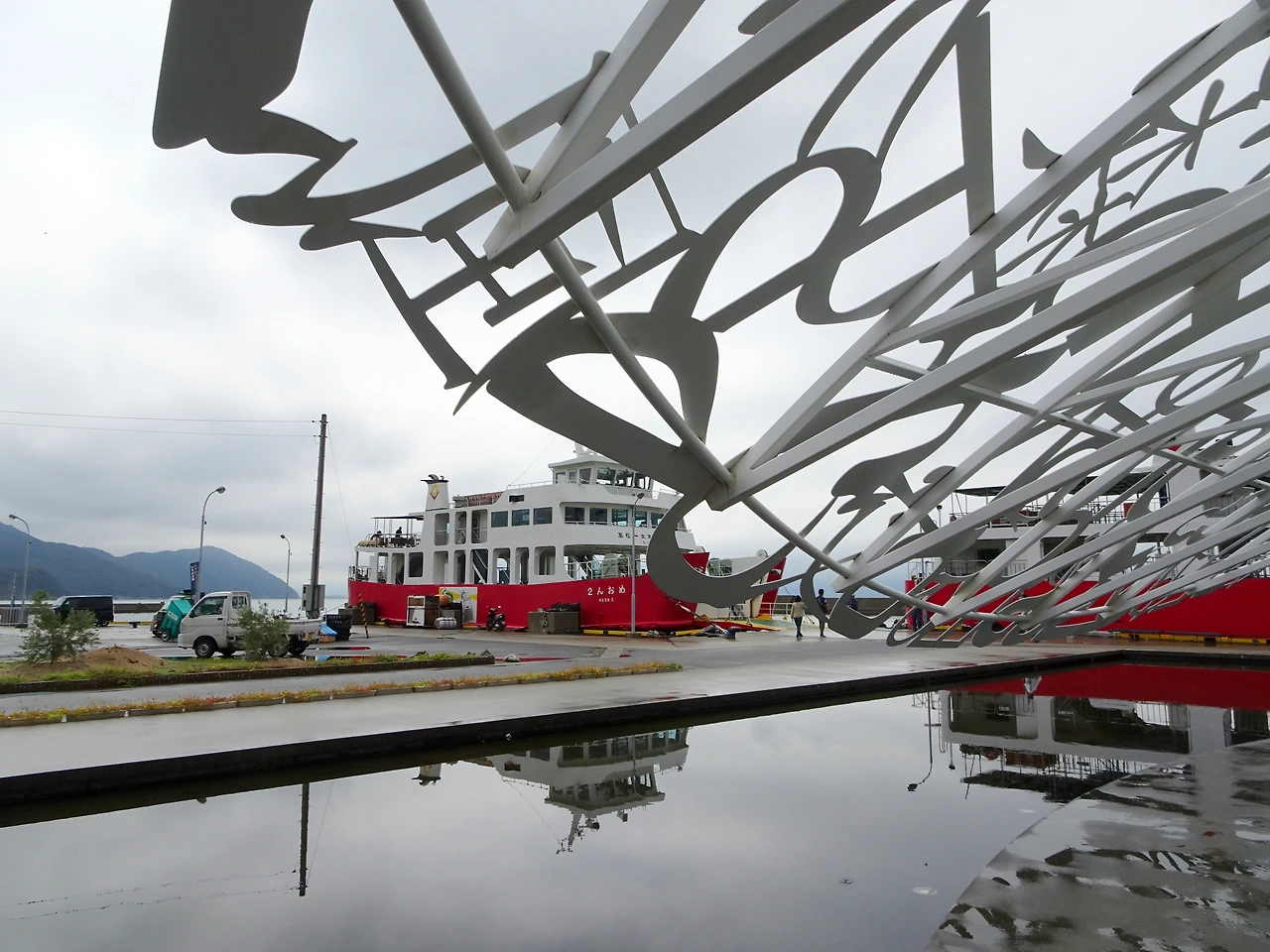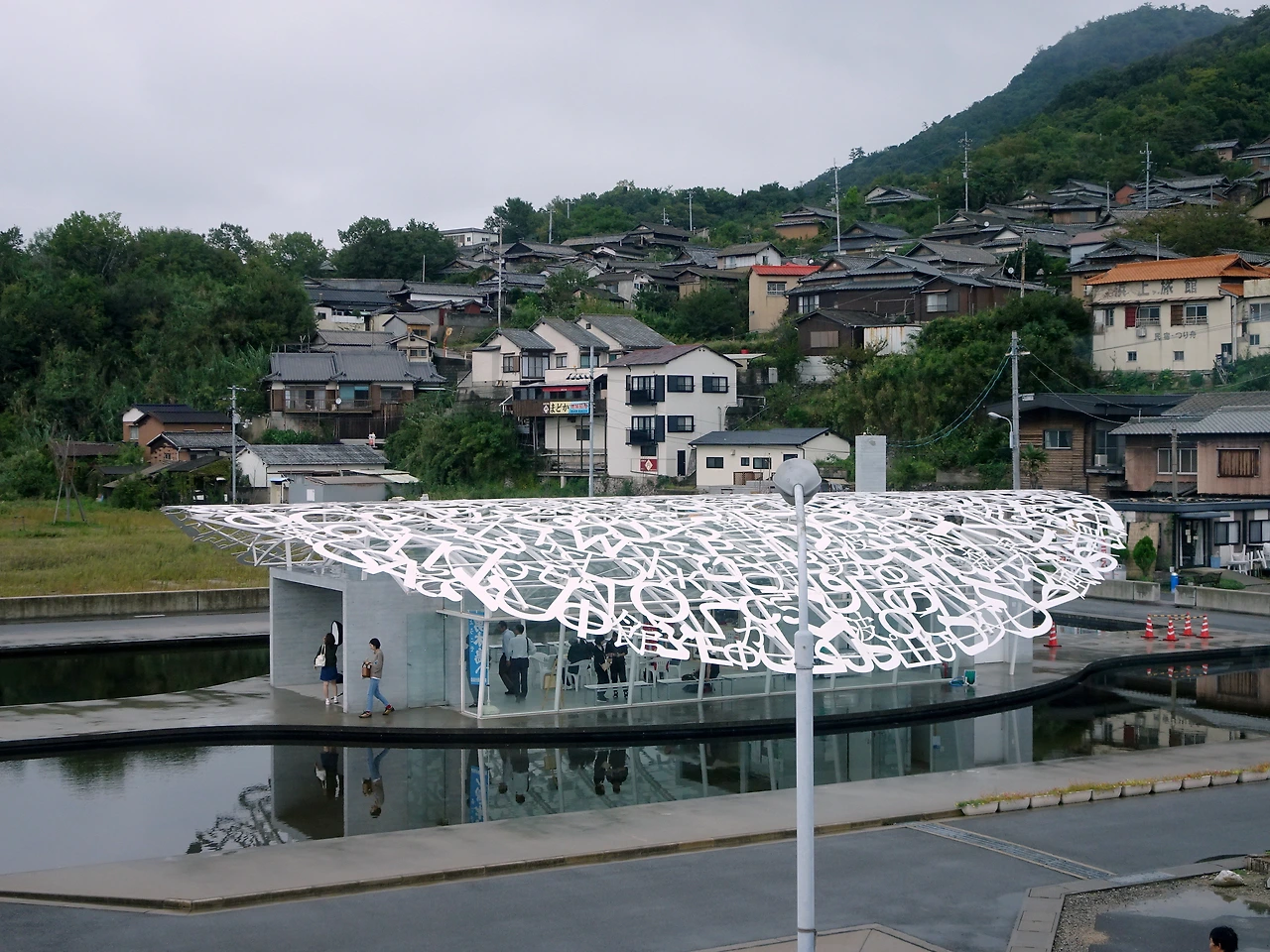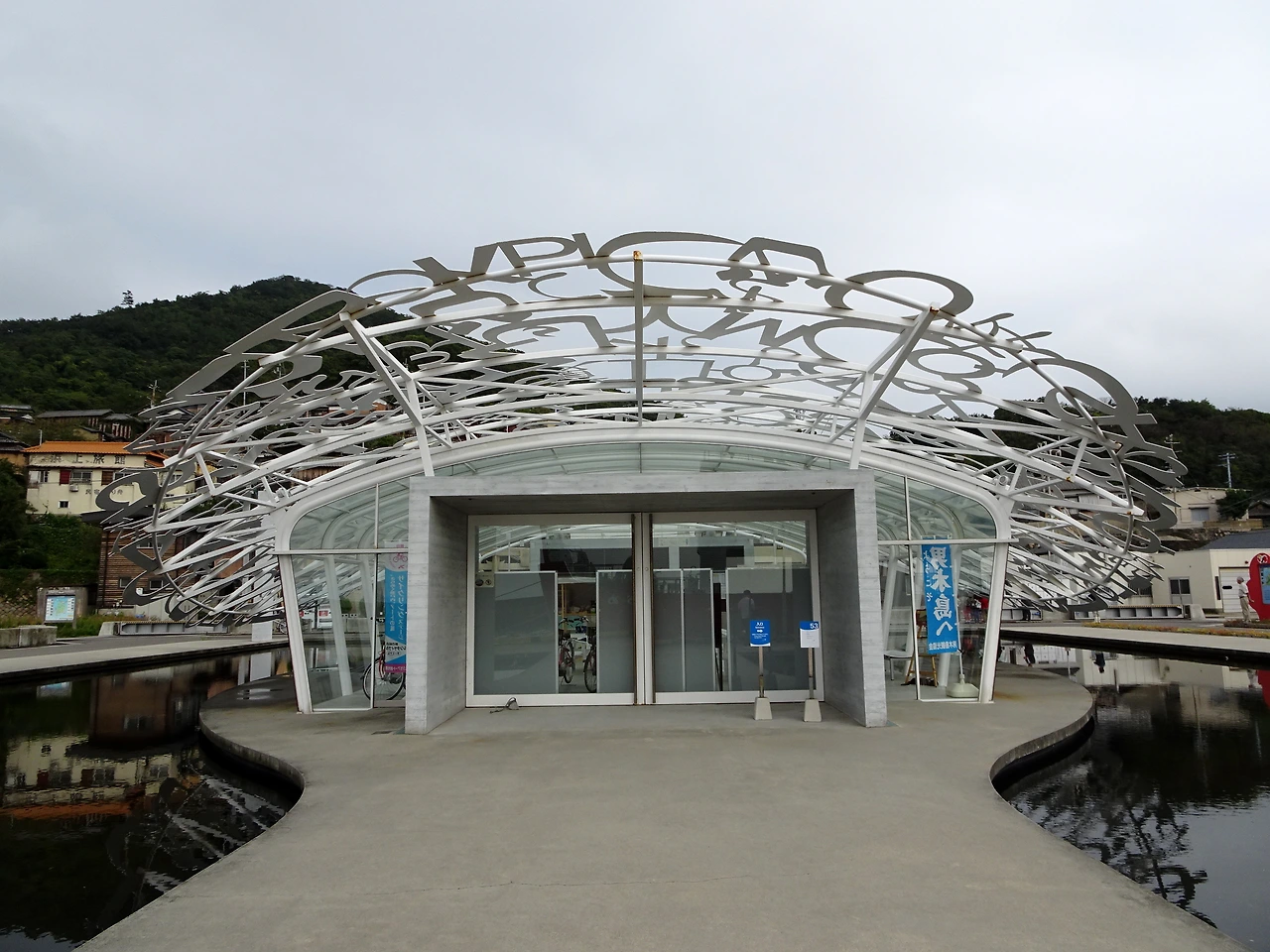 오기지마 항에서 가장 먼저 사람들을 맞이하는 것은 <오기지마의 혼>이다. 다양한 언어들이 조합된 지붕의 그림자가 수면에 투영되면서 '반투명한 공간'같은 느낌을 주는데 아쉽게도 지붕 위에 한국어는 없었다. '다른 언어들은 다 있으면서 어떻게 바로 옆 나라의 언어가 없을 수가 있지? 설마 일부러 뺐나? 이것이 바로 일본인들의 혐한?' 하는 의구심이 들었는데 이 작품을 만든 작가가 일본 사람이 아니라 스페인 사람이라는 걸 알고 나니 대강 수긍이 됐다. 지구 반대편에서는 정말로 한국이나 한국어의 존재를 모를 수도 있으니까. 누구나 자신이 속한 세계 위주로 생각하지만 사실 내가 속한 세계와 당신이 속한 세계는 많이 다를 수가 있기 때문에. (실제로 친구가 스페인 회사에 취업을 하려 했을 때 한국이라는 나라 자체를 설명해야하는 상황이 종종 있었다고 이야기한 적이 있다. 아주 예전 이야기 같지만 무려 2017년에 있었던 일이다)