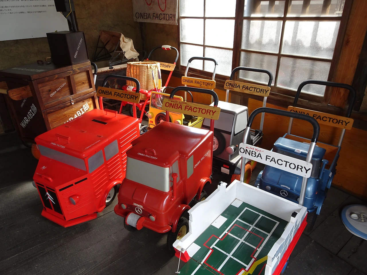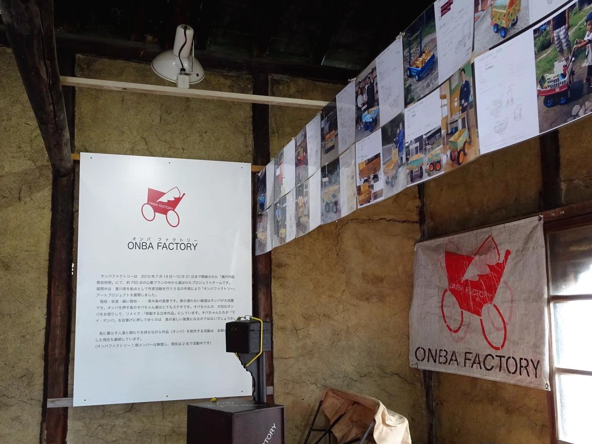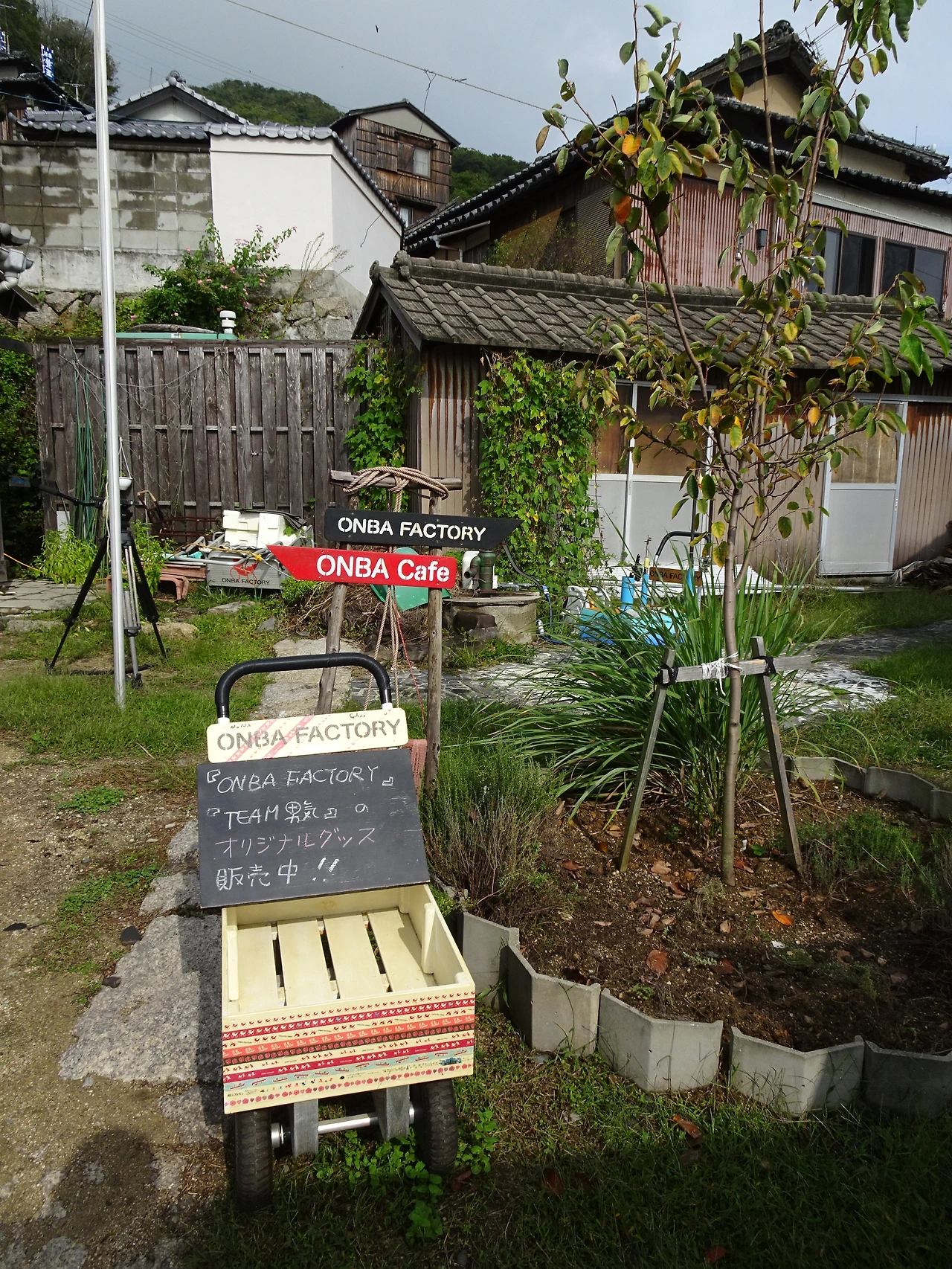 그런데 아무래도 이 온바들이 수상하다. 닮은 온바가 없이 모두 제각각이다. 유일한 공통점이라면 다들 "ONBA FACTORY"라는 글씨가 써있다는 것. 사실 이 온바들은 모두 세토우치 예술제의 작품으로서 만들어진 것들로, 아마 오기지마의 여러 작품들 중 가장 유명한 녀석일 것이다.