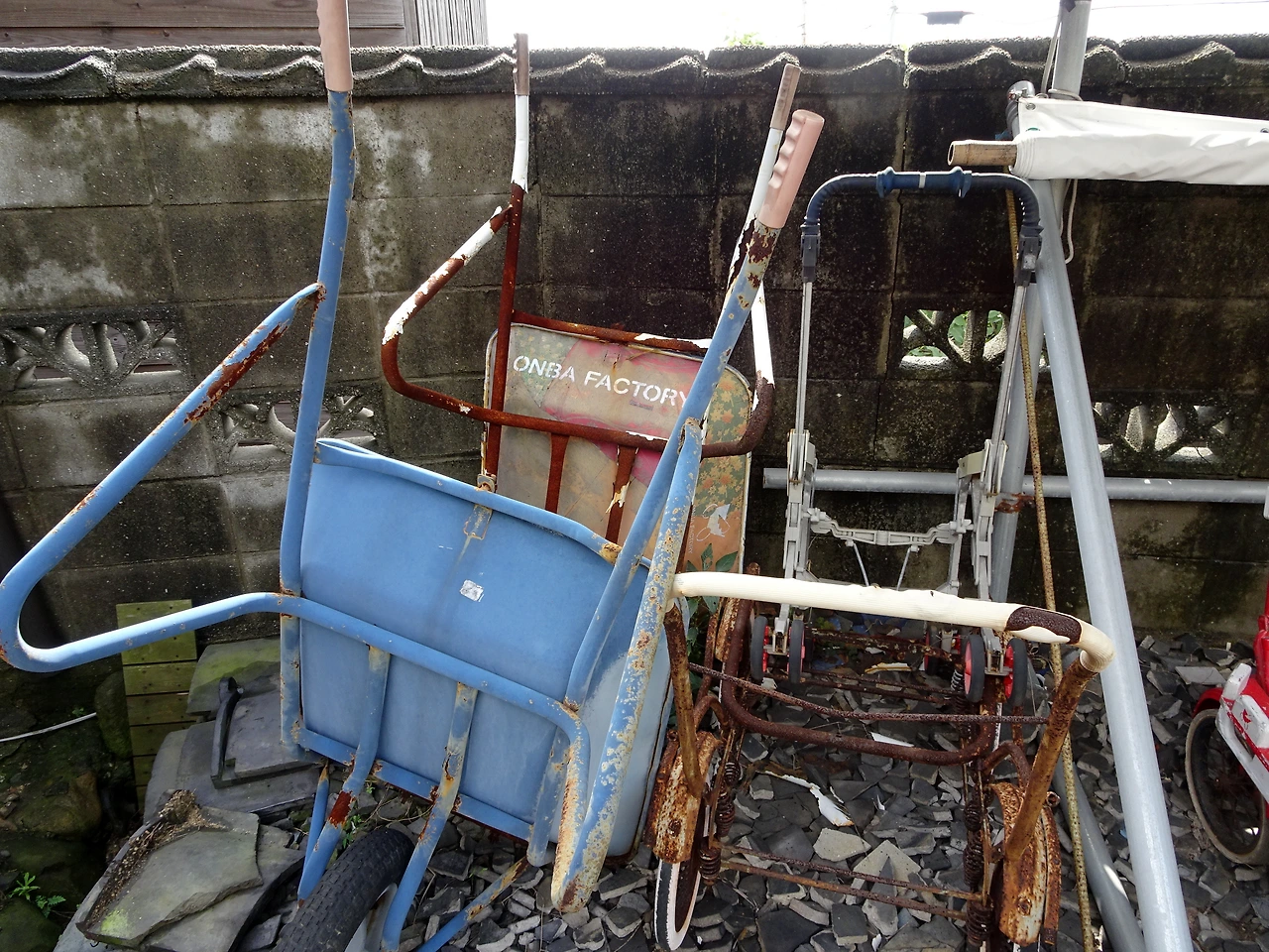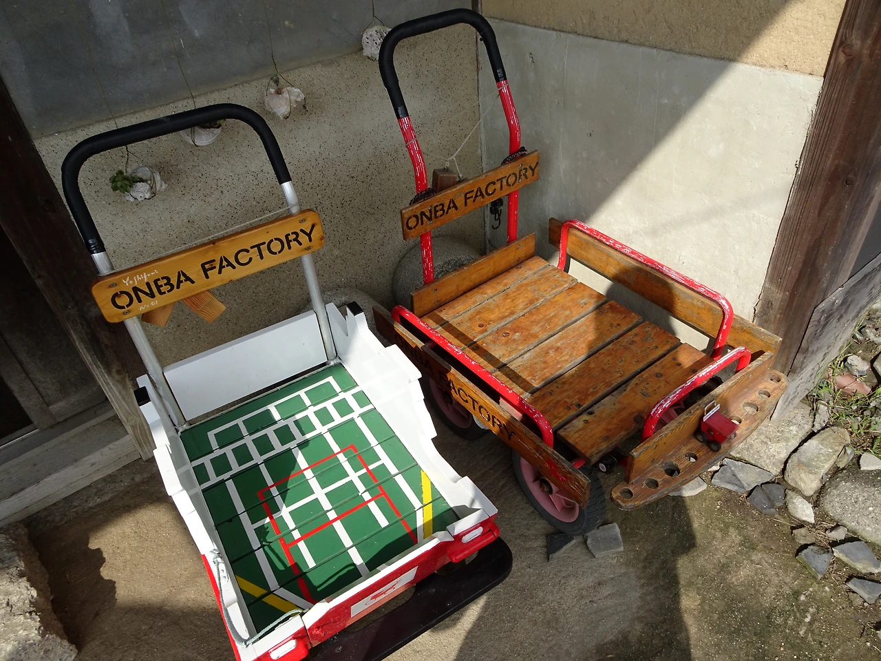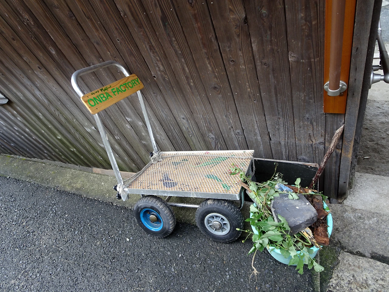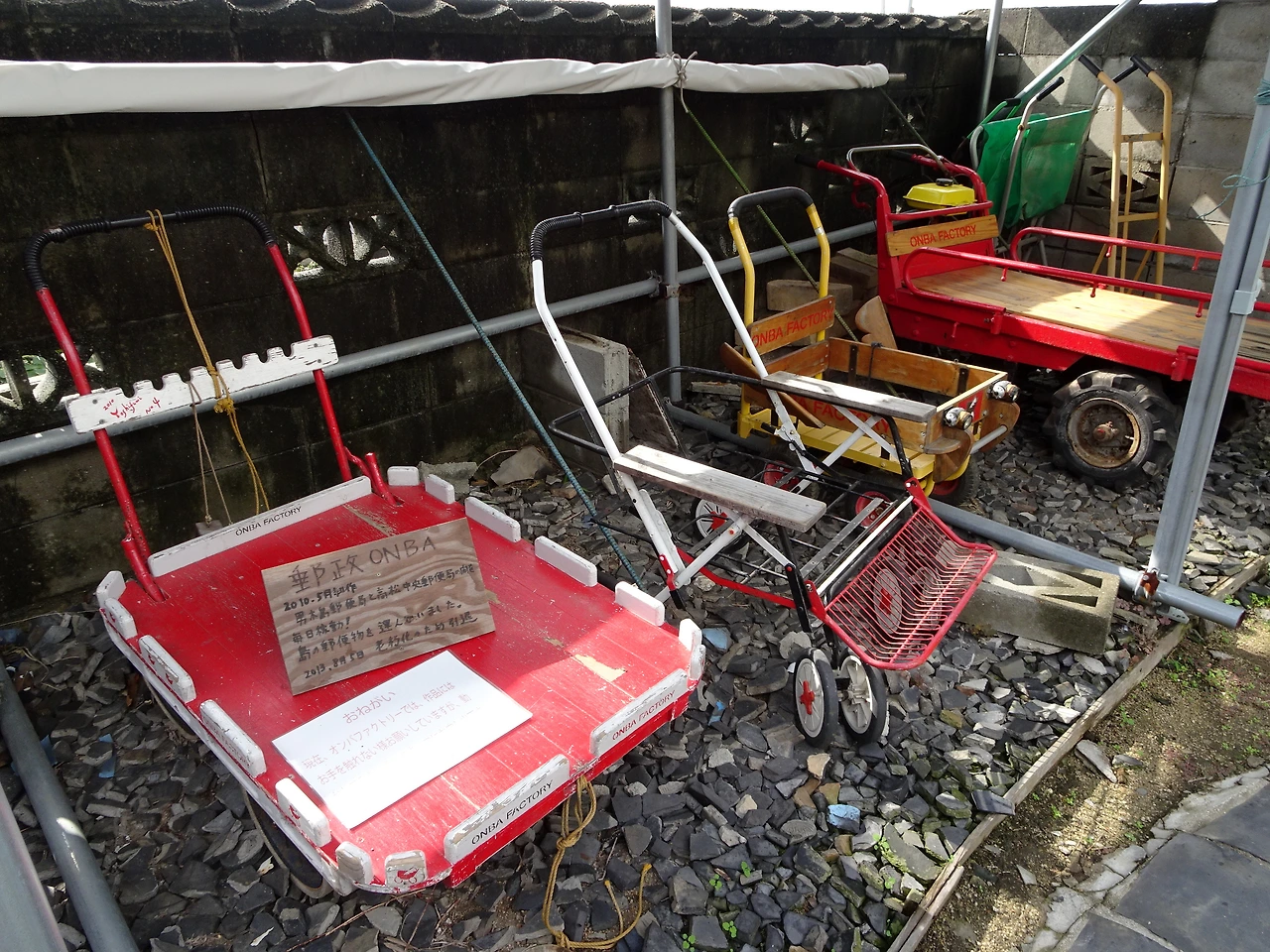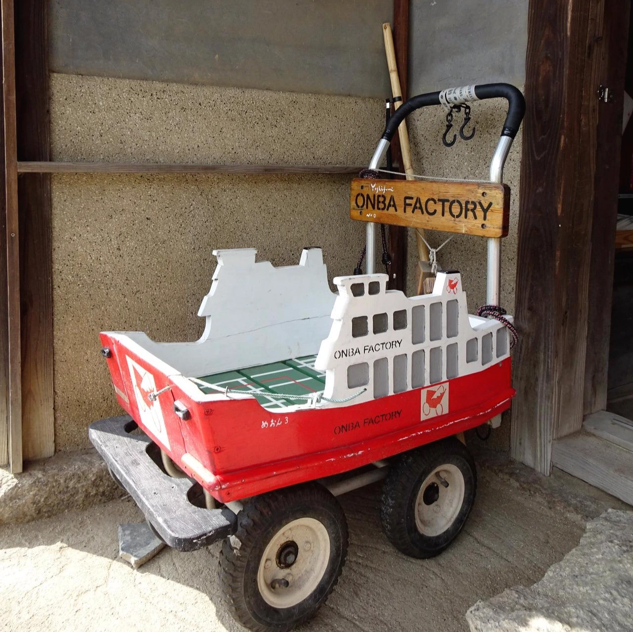 <오기지마 골목 벽화 프로젝트 wallalley>만큼이나 골목 중간중간에서 마칠 수 있는 것이 또 있다. 온바(onba)라는 자그마한 카트인데, 한국에서는 구루마(정확한 명칭은 아니겠지만) 정도로 통하는 물건이다. 노인분들이 주로 끌고 다니는 바퀴달린 작은 수레 말이다. 아무래도 섬에 노인들이 많다보니 집집마다 온바가 있는 분위기인데, 물론 개인의 성향에 따라 대문 앞에 덩그러니 내놓은 집도 있고, 마당에 놔둔 집도 있고, 아예 안 보이는 곳에 꽁꽁 넣어둔 집도 있다. 주민들의 사생활을 침해하지 않는 선에서 다양한 온바를 구경하는 것도 오기지마 산책의 묘미 중 하나다.