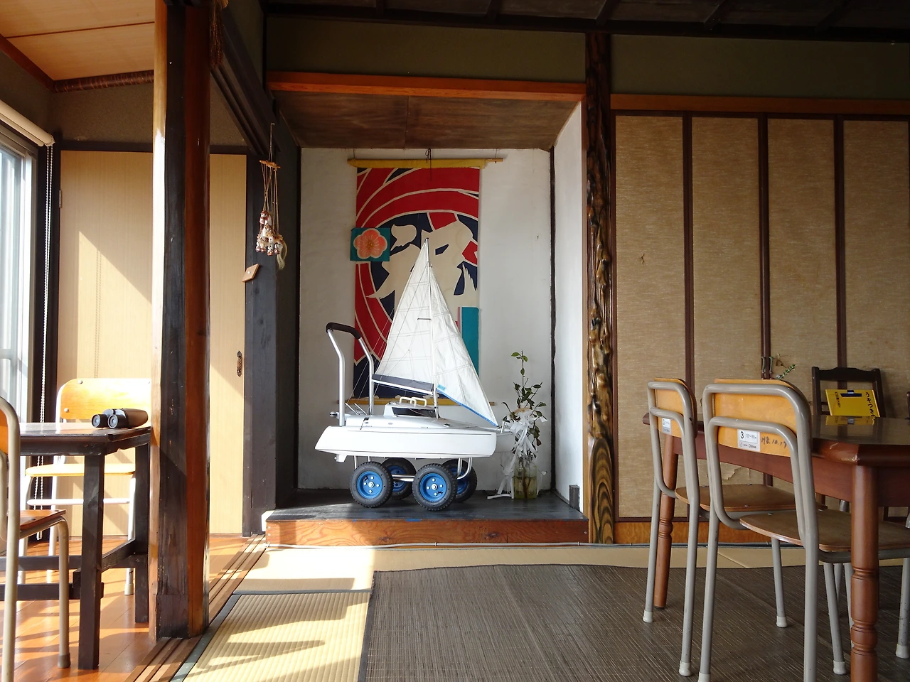 의도했던 카페 방문은 아니었지만 창 밖으로는 지붕이, 더 멀리는 바다가 보여 즐거운 기분으로 기다릴 수 있었다. 카페 한 켠엔 사진들도 있었다. 아마도 이 공간은 처음에는 빈 집이었는데 리모델링을 통해 지금의 모습을 갖추게 된 것 같다.