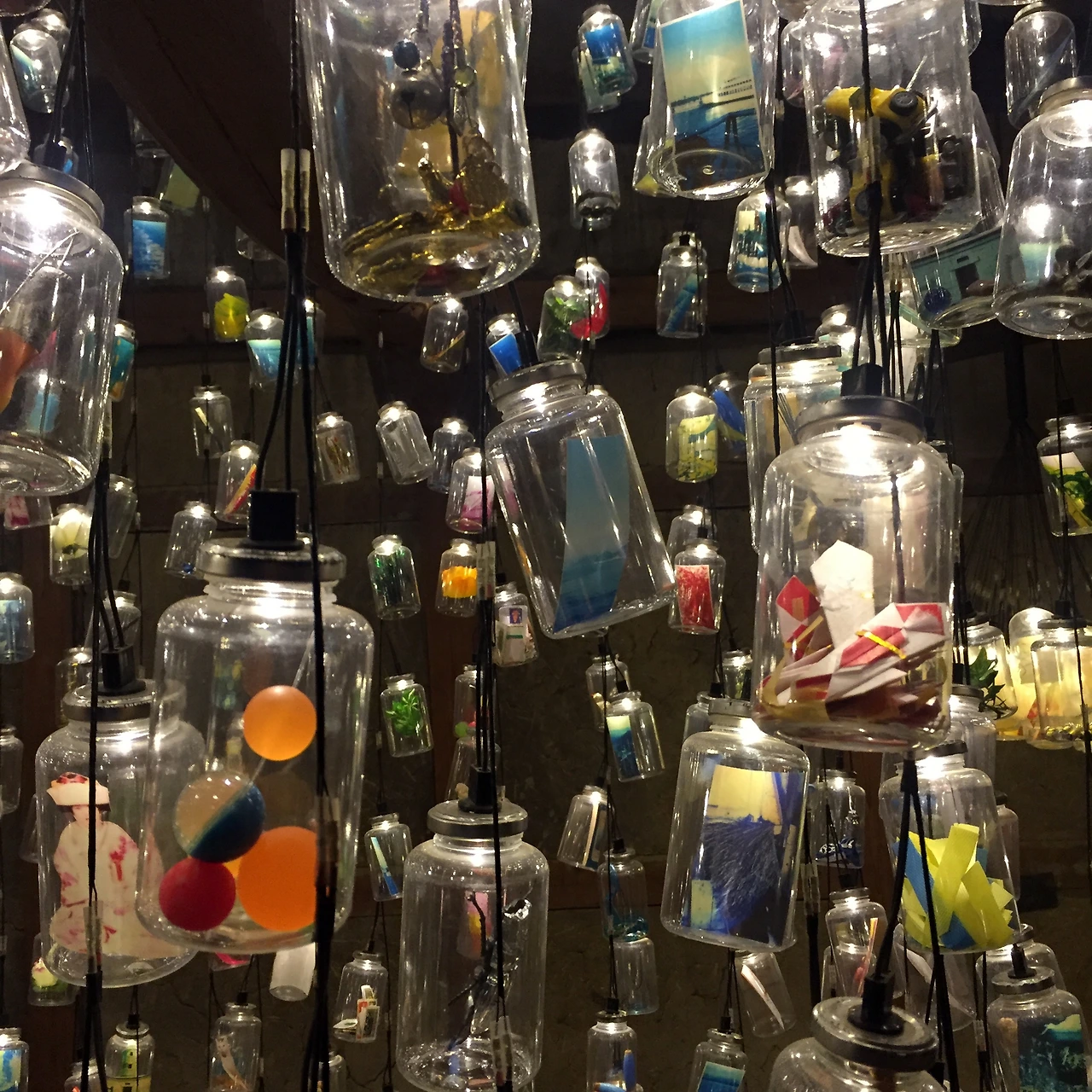 이 작품은 여러 개의 병이 모여 아름답게 빛을 내는데 휘황찬란하게 빛나는 것이 아니라 은은한 빛을 낸다. 우리를 지탱하는 기억도 사실은 어마어마하고 대단한 게 아니라 소소하고 은근한 것들이리라.