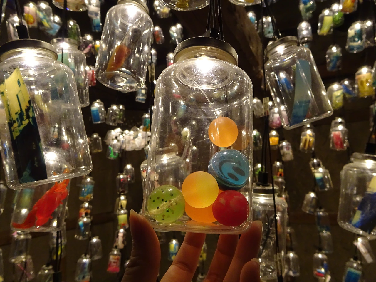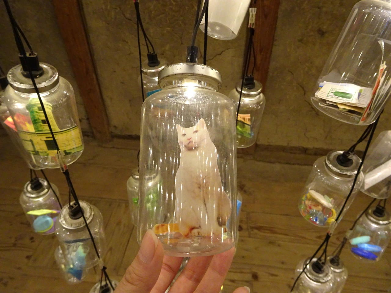 오기지마에는 아기자기한 감성을 바탕으로 하는 작품들이 많았다. 그 중 섬 주민들의 기억을 봉인했다는 <기억의 병>은 보기에도 예쁘고 전하고자 하는 메시지도 직관적이라 좋았다. 각 병 안에는 왜 이런 물건이? 싶은게 들어있기도 하고 누군가의 사진이 들어있기도 했는데 그 사연을 알듯 말듯해 들여다보는 재미가 있었다. 예를 들자면 지금은 단종된 마일드 세븐 담배(메비우스로 바뀌었다)가 들어있는 병이 있었는데, 이게 담배를 피웠던 젊은 날의 기억을 담고자 한건지, 혹은 돌아가신 아버지가 피우던 담배여서 아버지를 추억하는 마음에 담은건지 등의 자세한 내용을 알 수는 없다. 그만큼 각자의 상상력으로 병 안의 빈 공간을 채울 수 있는 작품이기도 해 하나하나를 꼼꼼히 들여다보며 오랜 시간 머물렀다. 고양이나 강아지 사진이 들어있는 병들이 꽤 있었는데 아마도 한 때는 가족이었지만 지금은 무지개 다리를 건넌 친구들이 아닐까 생각해 보기도 했다. 만약 나에게도 병 안에 잊고 싶지 않은 기억을 담을 수 있는 기회가 주어진다면 나는 어떤 기억을 봉인할까, 나는 아직 답을 내지 못했다.