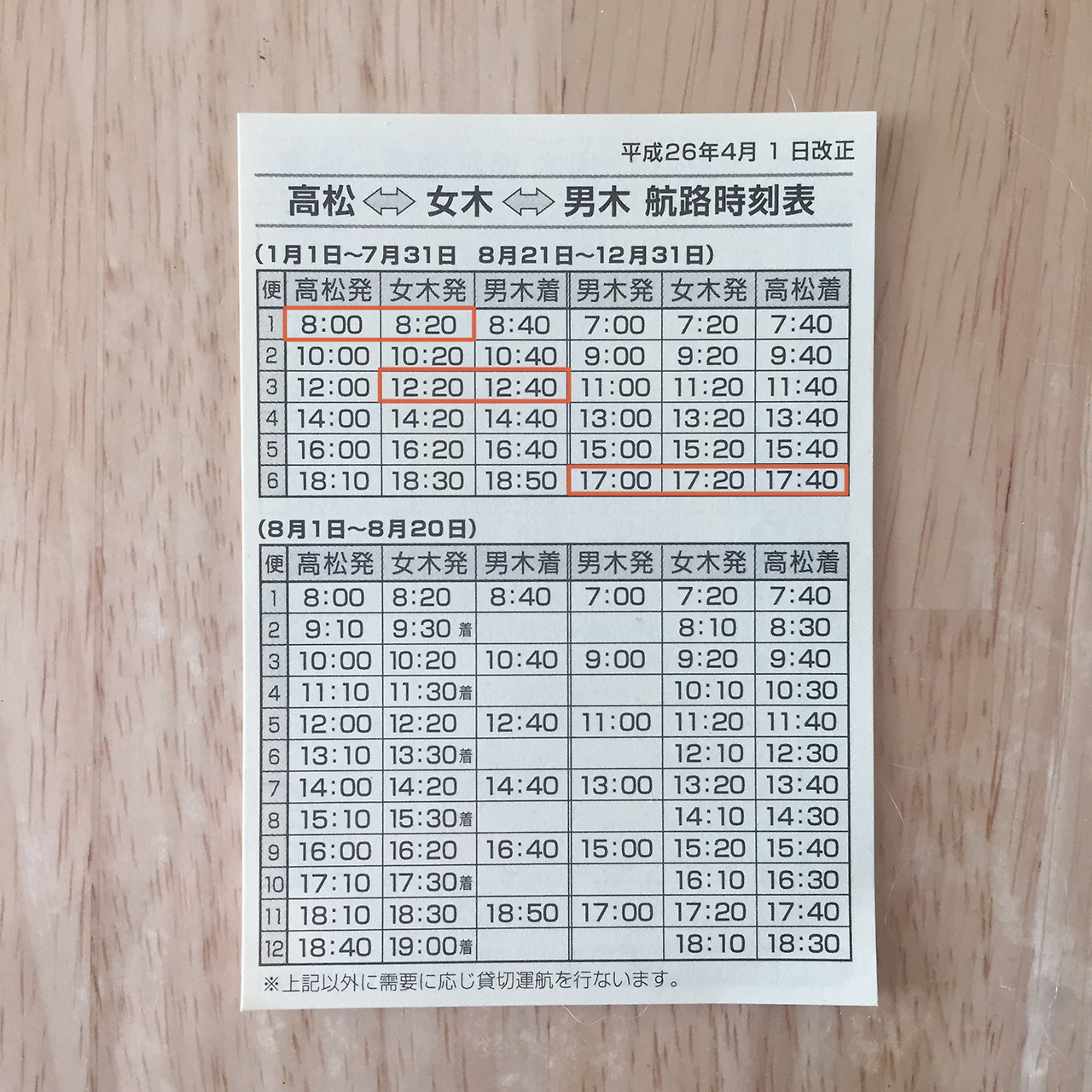 - 다카마츠와 오기지마를 바로 오가는 페리는 없으며 중간에 반드시 메기지마를 경유하게 됨