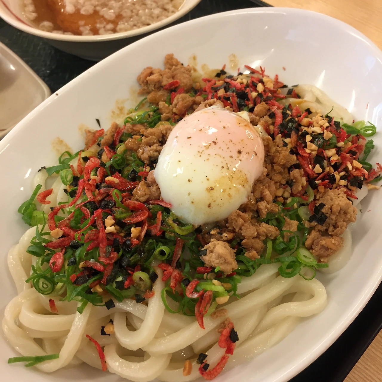 다카마츠에서 가장 일반적인 형태의 우동. 국물(사실 국물보단 소스에 가깝다)은 바닥을 채울 정도로 자박하게만 부어나오거나, 혹은 내가 직접 붓게 되며 "약간 흥건한 비빔면" 수준으로 생각하면 된다. 면발은 차갑게 주문할 수도 뜨겁게 주문할 수도 있는데 뜨거운 경우엔 날 달걀을 함께 올려 면발의 온기로 달걀을 익히며 비비기도 한다.