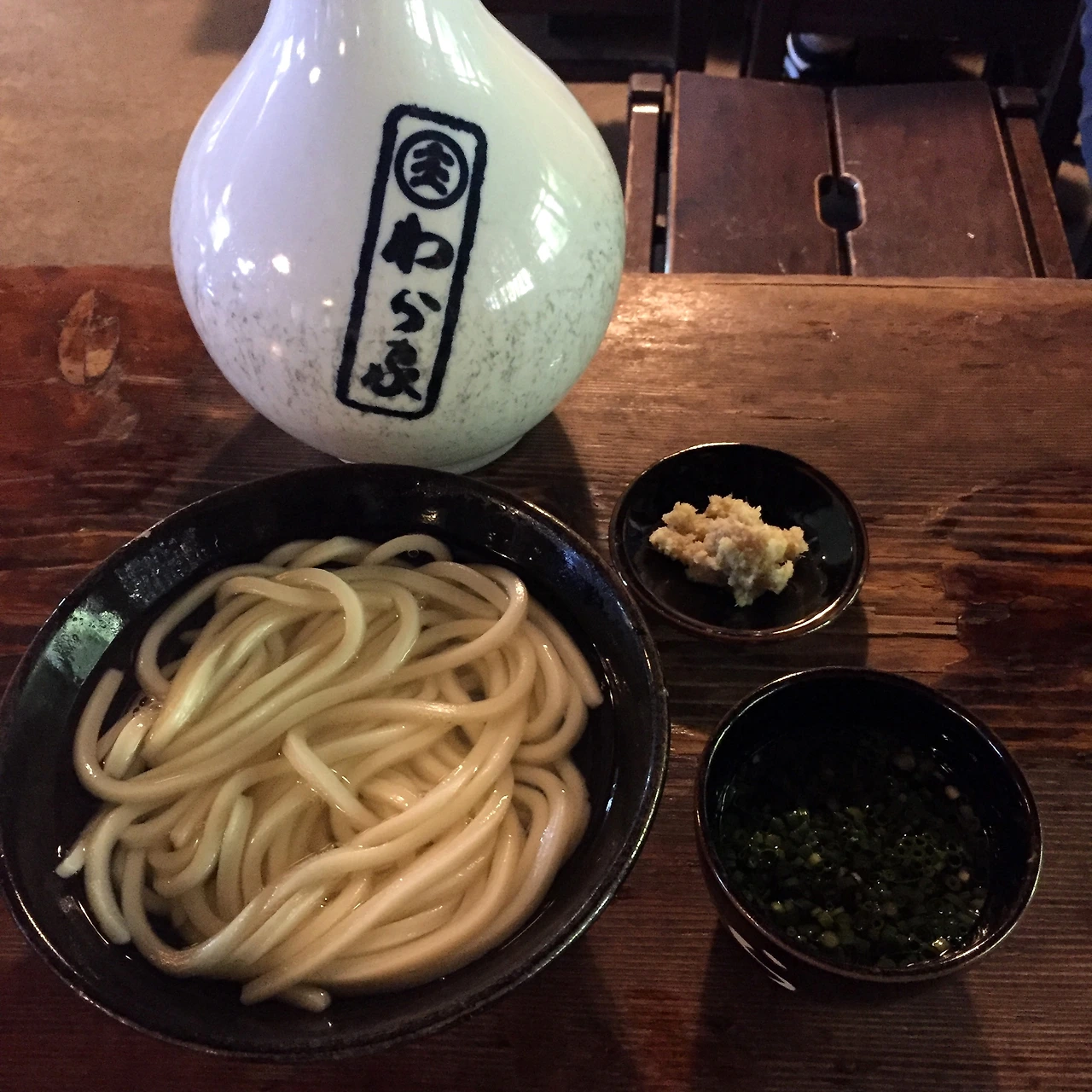 가마아게 우동과 유사하지만 면발을 한번 찬 물로 헹궈내어 차가운 형태로 제공된다. 겉보기엔 메밀 소바와 비슷한데 면발이 메밀이 아니라 우동 면이라는 차이가 있다. 면발의 쫄깃함과 탱글함을 경험하고 싶을 때는 이 메뉴가 가장 좋다.