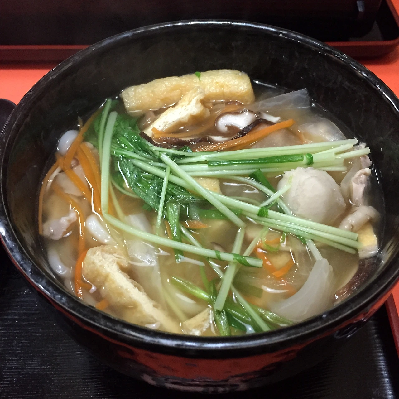 우리가 흔히 '우동'이라고 하면 떠올리는, '국물 맛이 끝내줘요!'하는 바로 그 우동. 뜨거운 국물에 푹 잠기다보니 아무래도 면발의 탱글함은 조금 떨어지지만 몸을 녹여주는데는 역시 가케 우동이 최고다.