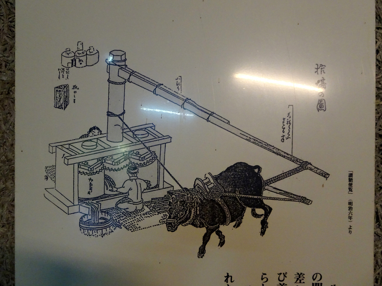 재미있었던 곳은 설탕을 만드는 공간이었다. 예전부터 지금까지 카가와 현의 설탕은 무척이나 유명하며 덕분에 '와산본'이라는 설탕 과자도 여지껏 제법 비싼 가격에 팔리고 있다. 지금이야 물론 그렇지는 않겠지만 그 시절엔 소들이 열심히 톱니바퀴를 돌렸던 것 같다.