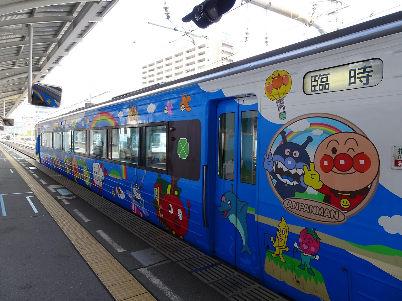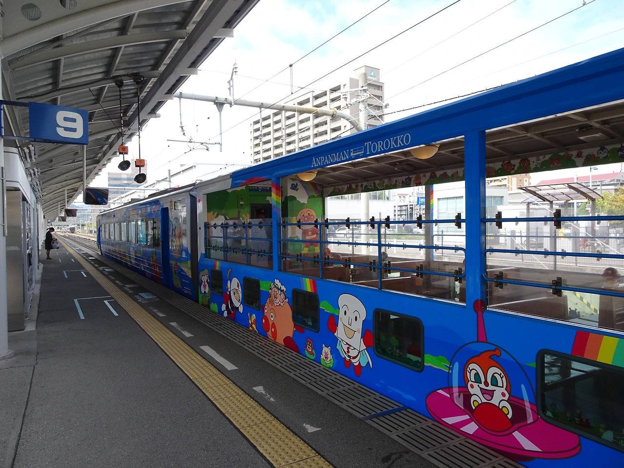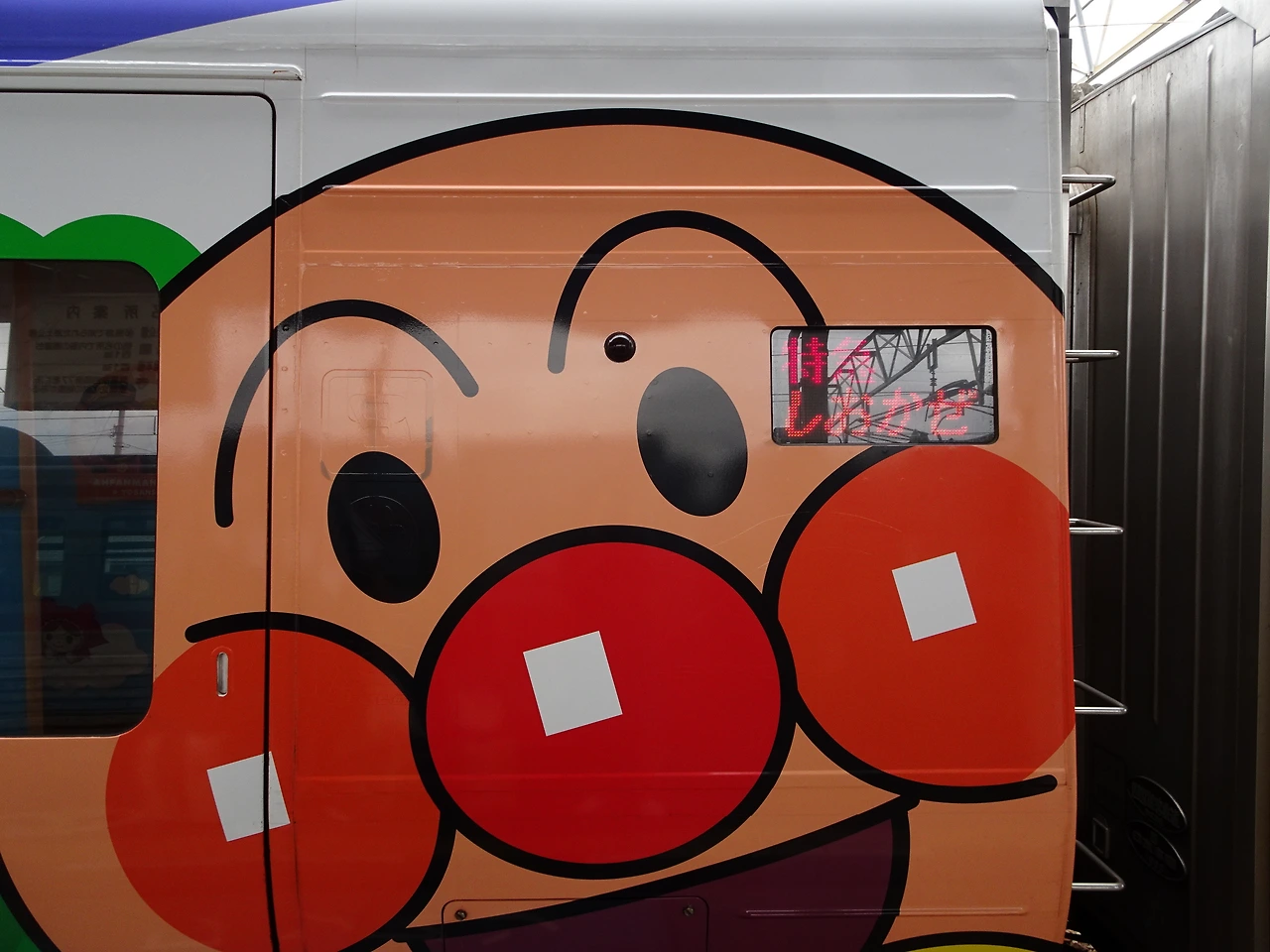 호빵맨 열차는 노선에 따라 여러 종류가 있어서 이 때도 한 대가 대기 중이었다. 다만 이 열차는 근거리를 가는 토롯코 열차. 창문이 없어 바람이 그대로 들이치기 때문에 아주 고속으로는 달릴 수가 없는, 좀 더 관광용 열차라고 보면 된다.