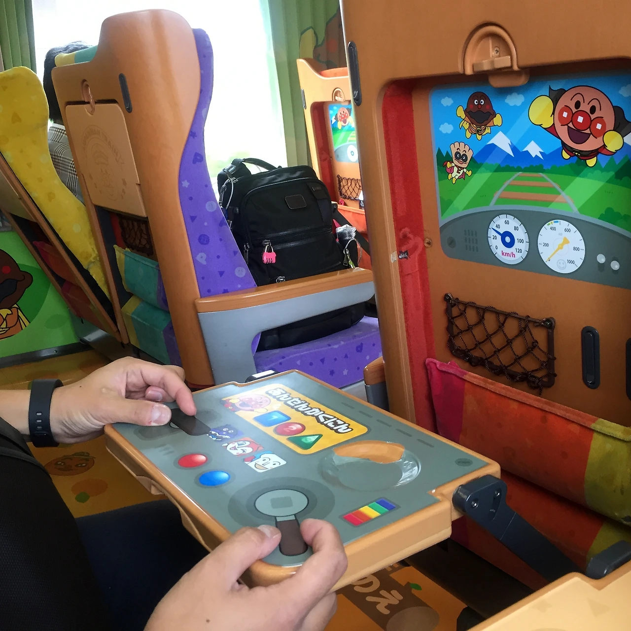 열차의 외부뿐 아니라 내부도 호빵맨으로 가득하다. 일본에는 유독 장수하는 캐릭터가 많은데 호빵맨도 그 중 하나다. 1970년대, 배고팠던 시절에 '영웅이라면 일단은 사람들을 배부르게 만들어 줘야 한다'는 생각에서 태어났다는 호빵맨. 배고팠던 시절은 진작에 지나갔지만 호빵맨은 여전히 사랑을 받고 있는 모양이다.