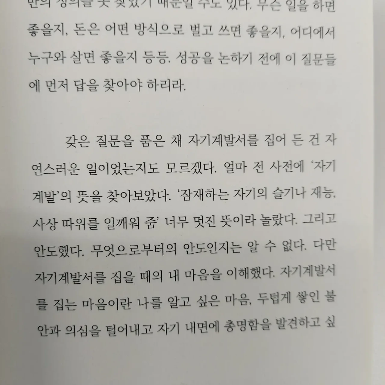 자기 계발서를 집는 마음이란 나를 알고 싶은 마음, 두텁게 쌓인 불안과 의심을 털어내고 자기 내면의 총명함을 발견하고 싶은 마음이다.