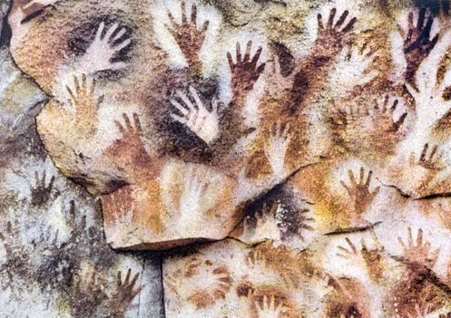 손바닥을 벽에 놓고 주위에 색을 칠했다.