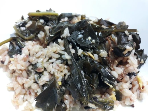 그 위에 취나물을 얹고 밥을 짓는다.