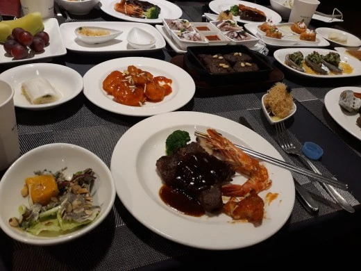 삼성 분위기라 음식도 휘황찬란하다.