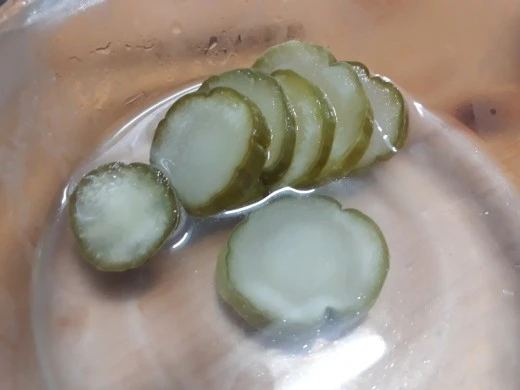 반찬은 개운하게 짜지 않은 물 오이지 하나.