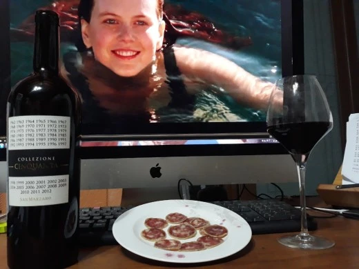 선물 받은 이태리 와인과 살라미를 세팅했다.