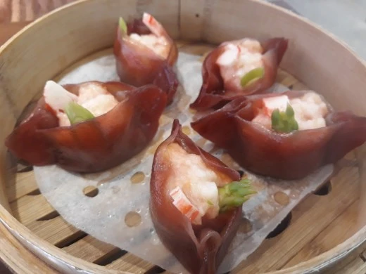 아스파라거스가 박힌 새우 딤섬,