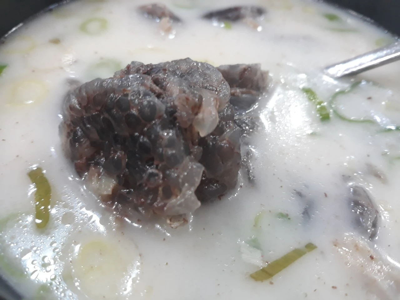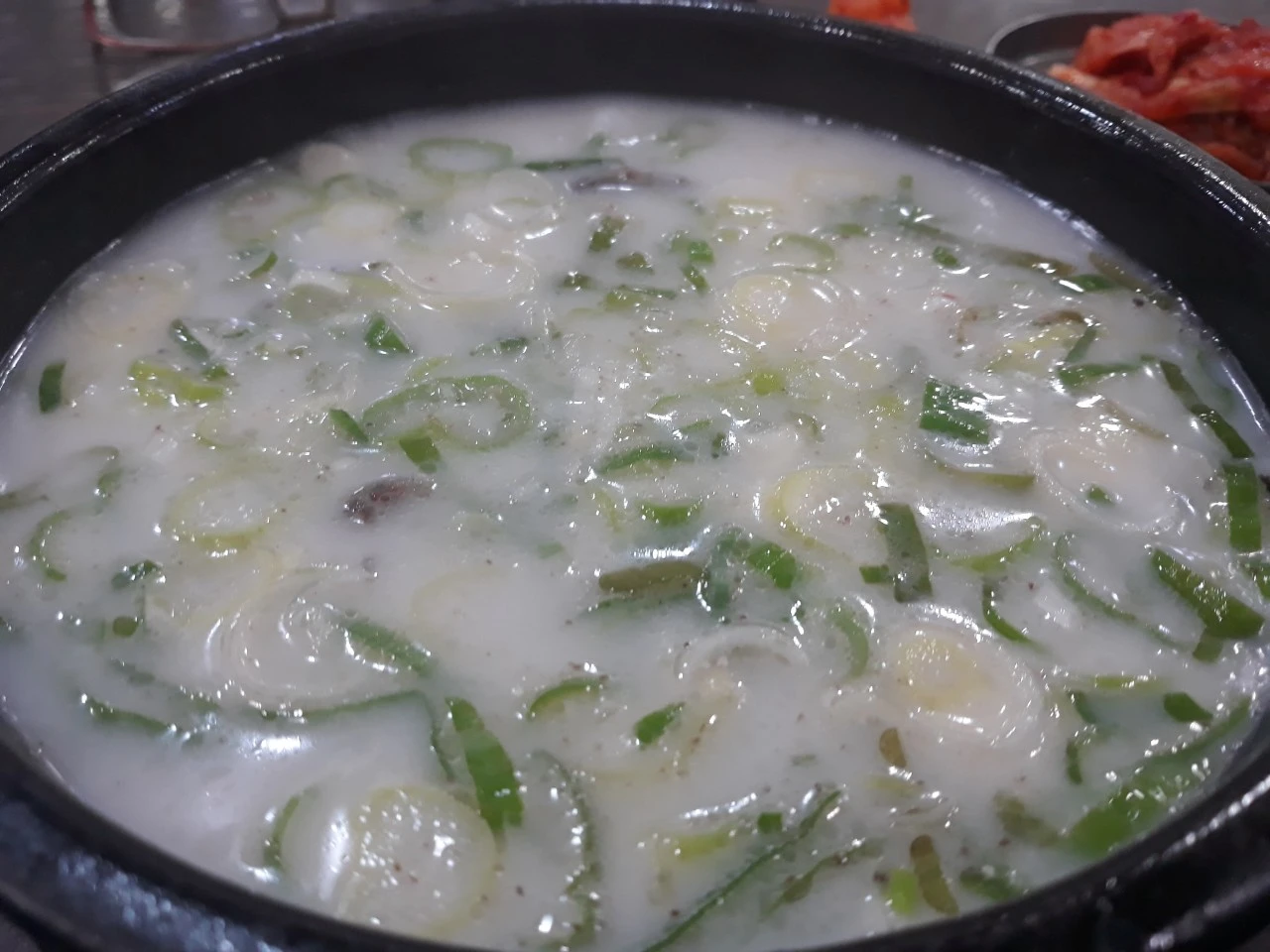 뽀얀 것이 돼지 사골을 우렸는지 구수하다.