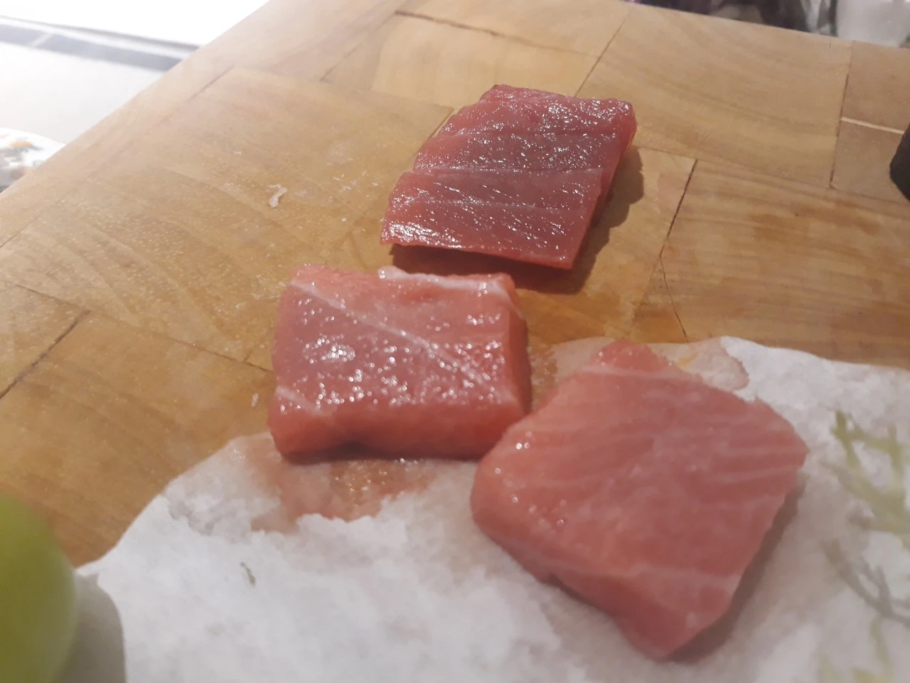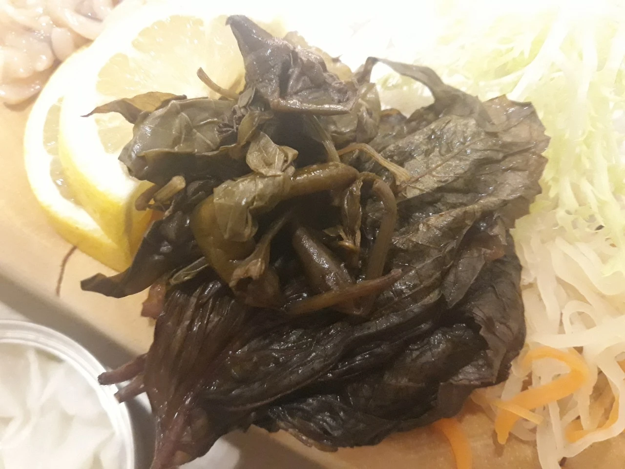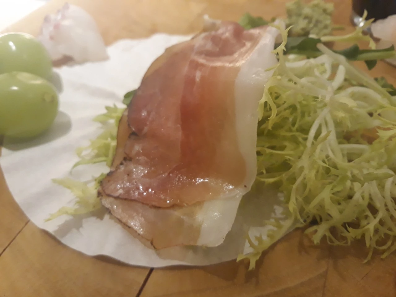 고급 장봉이 야채들과 걑이 아주 얇게 썰어져 나오고 도미는 할라피뇨 고추와 같이 나오며 참기름에 찍어 먹어 보라는 듯 바깔라오(스페인 대구 절임). 특별한 맛의 단새우 일본오징어 젓갈. 차조기. 버라이어티 한 전식이었다.