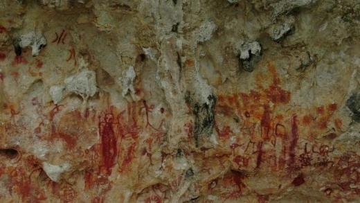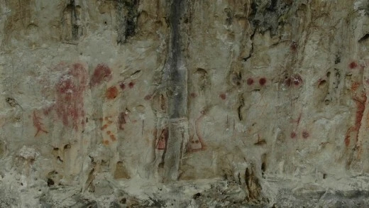 바위에 많은 그림이 그려져 있었다.