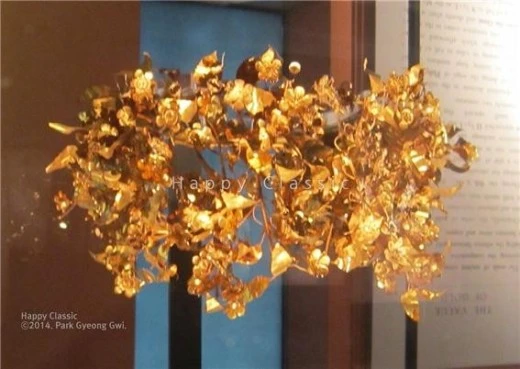 왕비 금관,. 금과 에나멜로 장식. B.C336년 경.