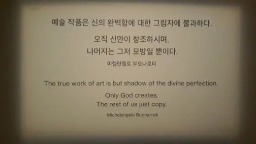미켈란젤로의 신 앞에 굴복이 서린 문장에서