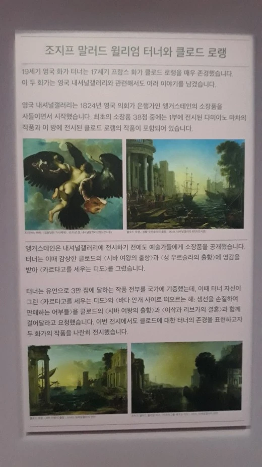 로랭과 터너의 그림이 같이 나란히 걸려 있다.