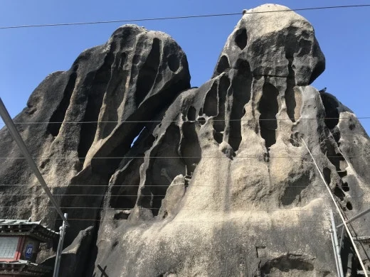 얼굴바위(왼쪽)와 모자바위(오른쪽)