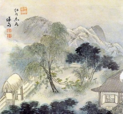 인곡의 집 풍경을 그린 것이다.